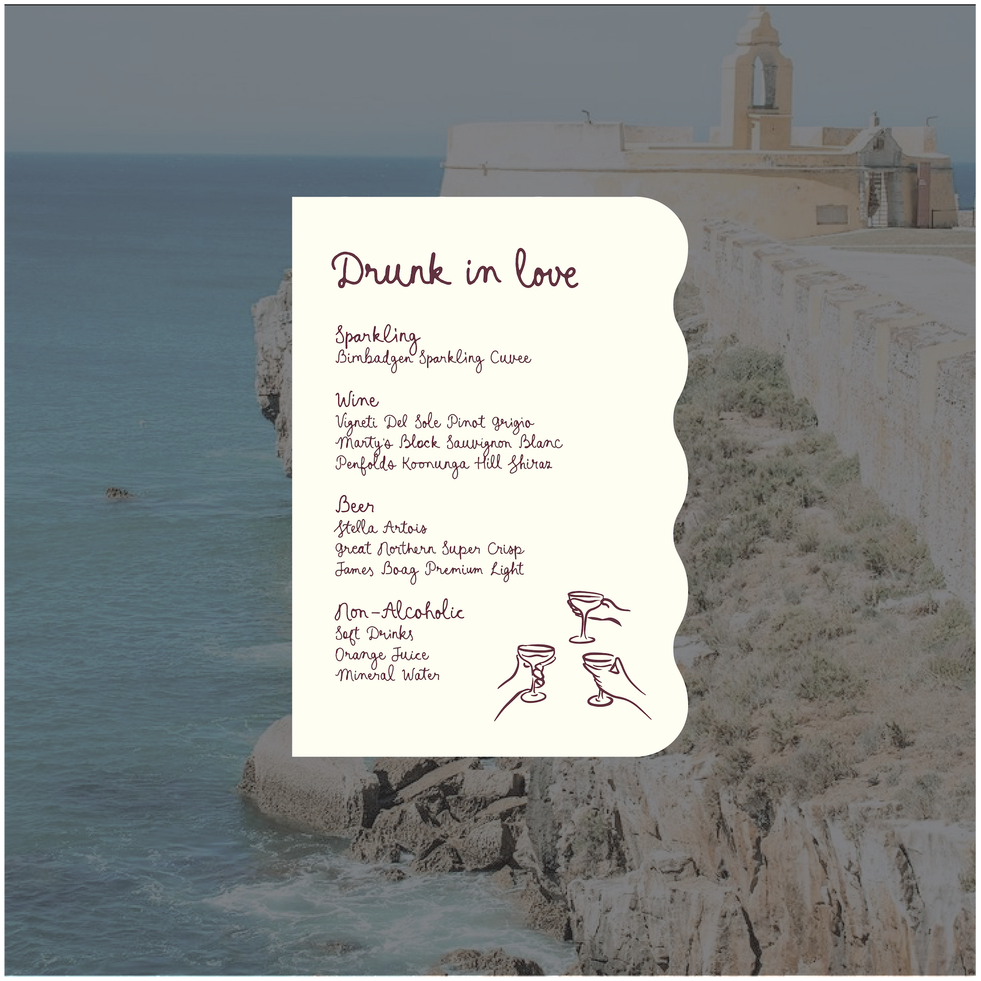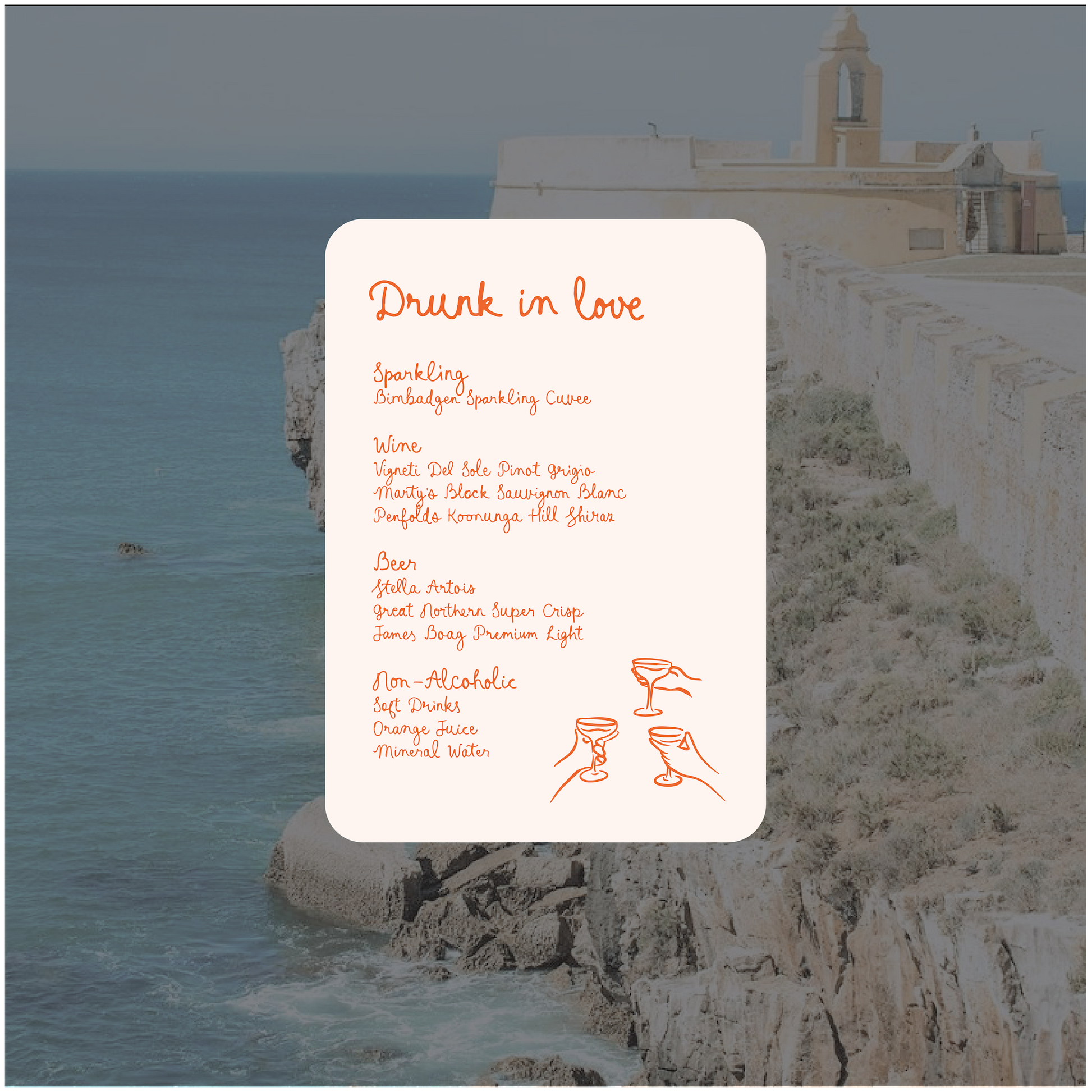 Production will take 4 weeks total from approval of final designs/mockups. 3 weeks to produce + 1 week shipping. This means we need your order and final drinks list 5 weeks beforehand.