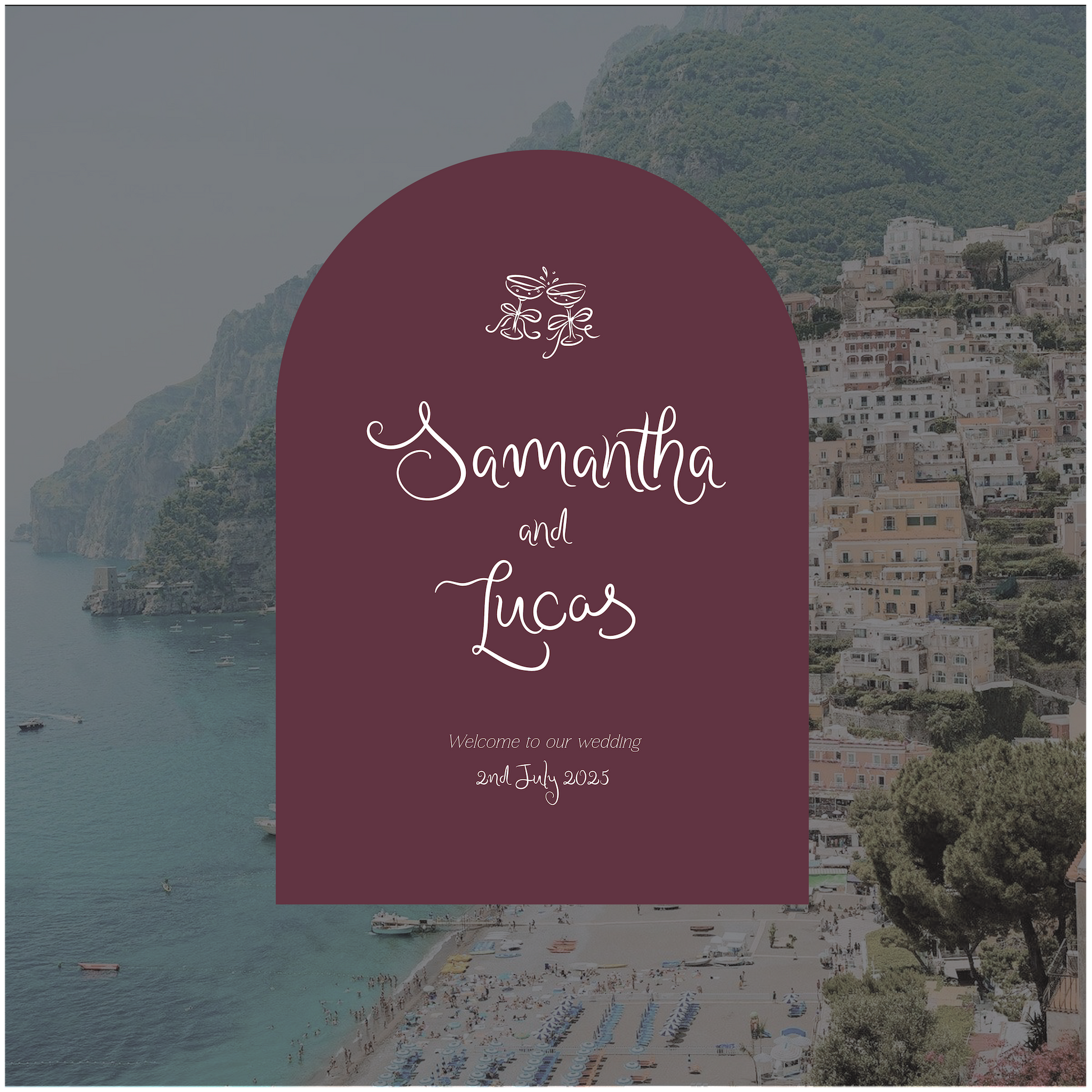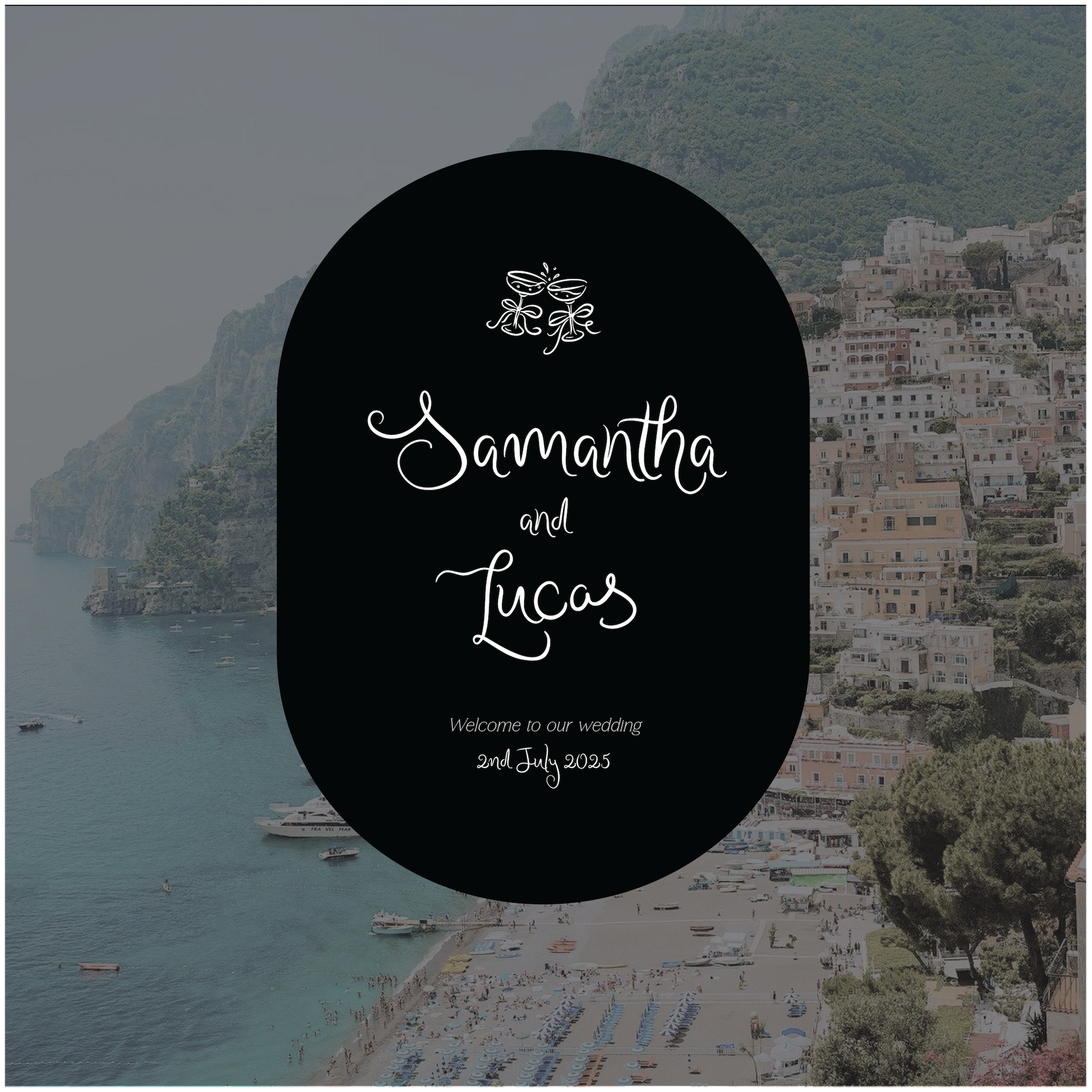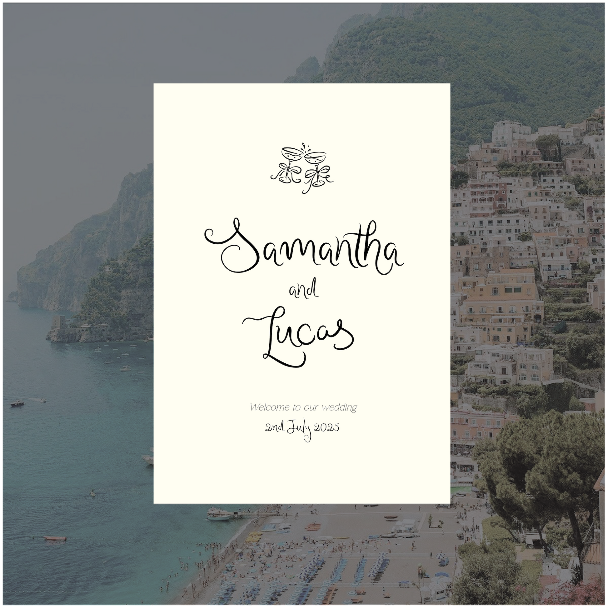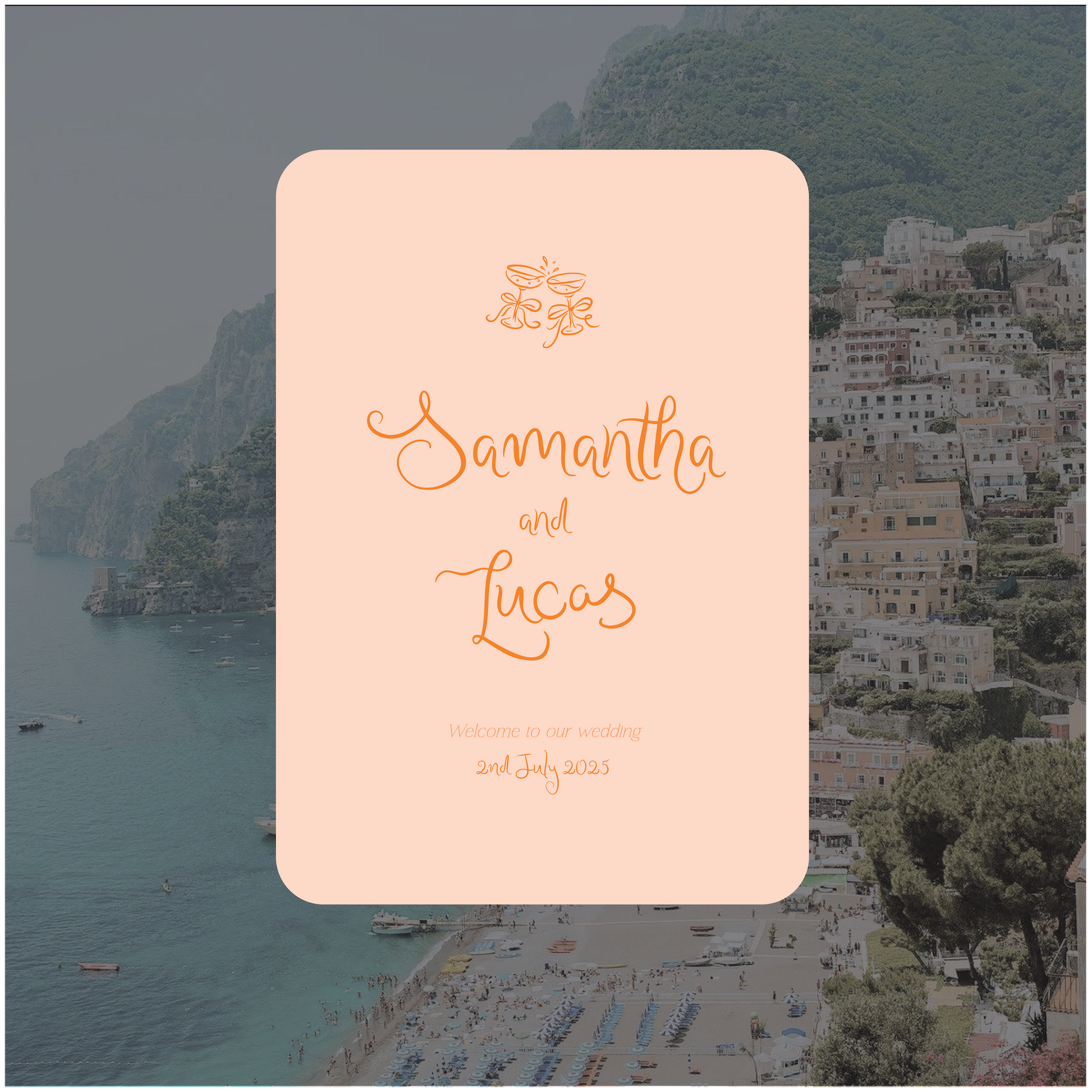 Part of the Italy Collection, this wedding welcome sign will transport you to Italy with our fun curly font and la dolce vita lifestyle vibes. Optional illustration to make it that extra bit special.