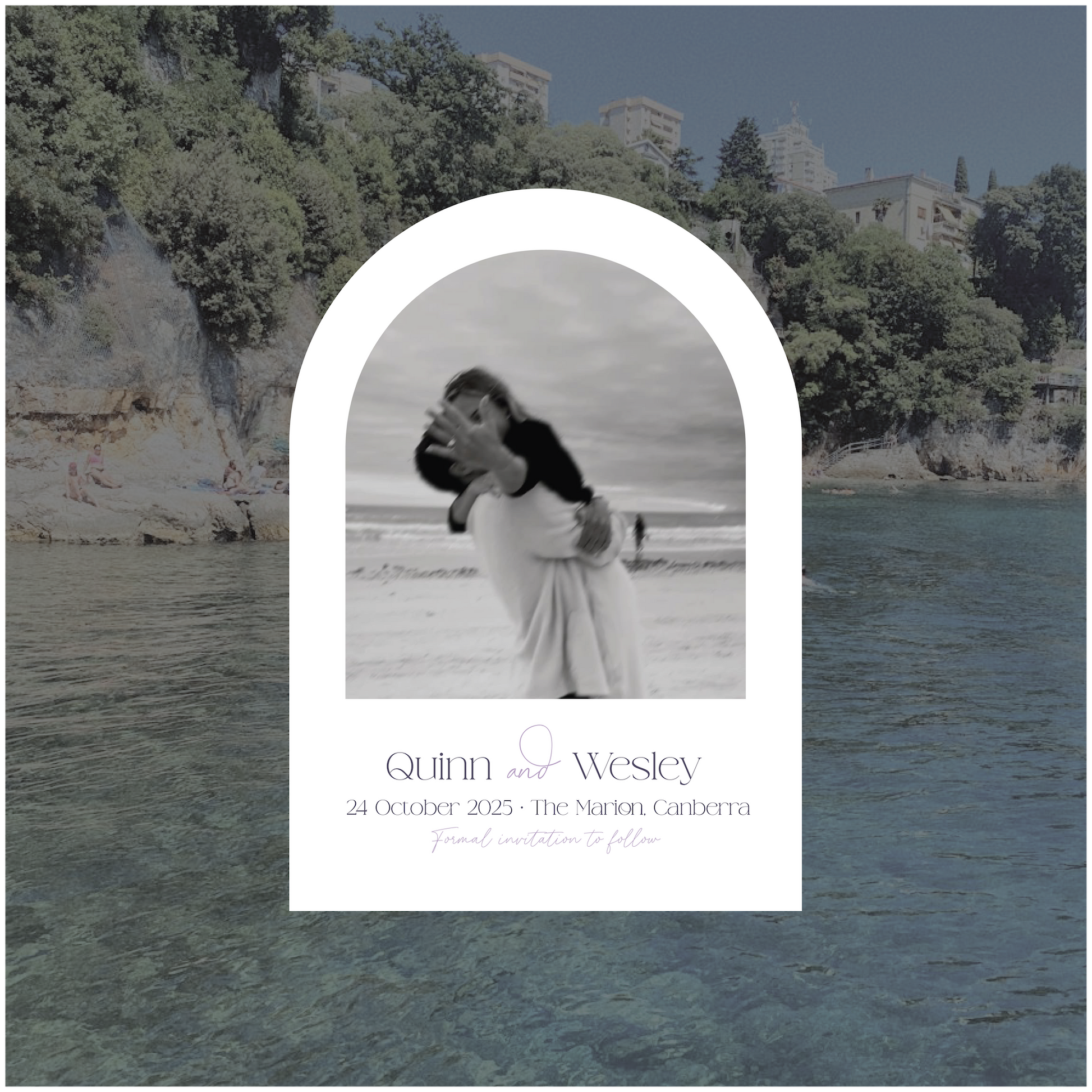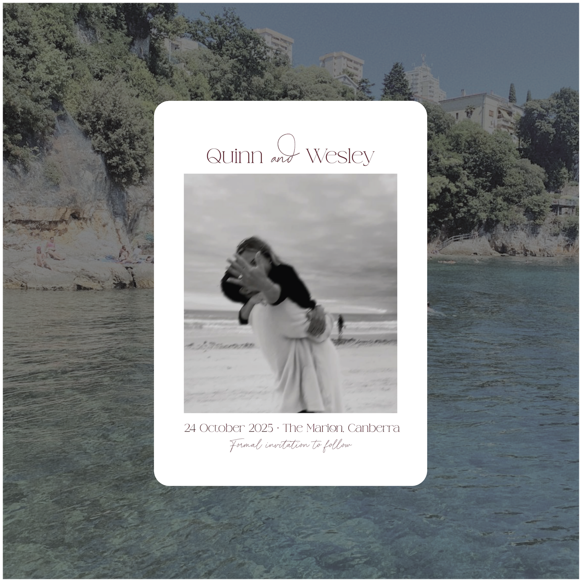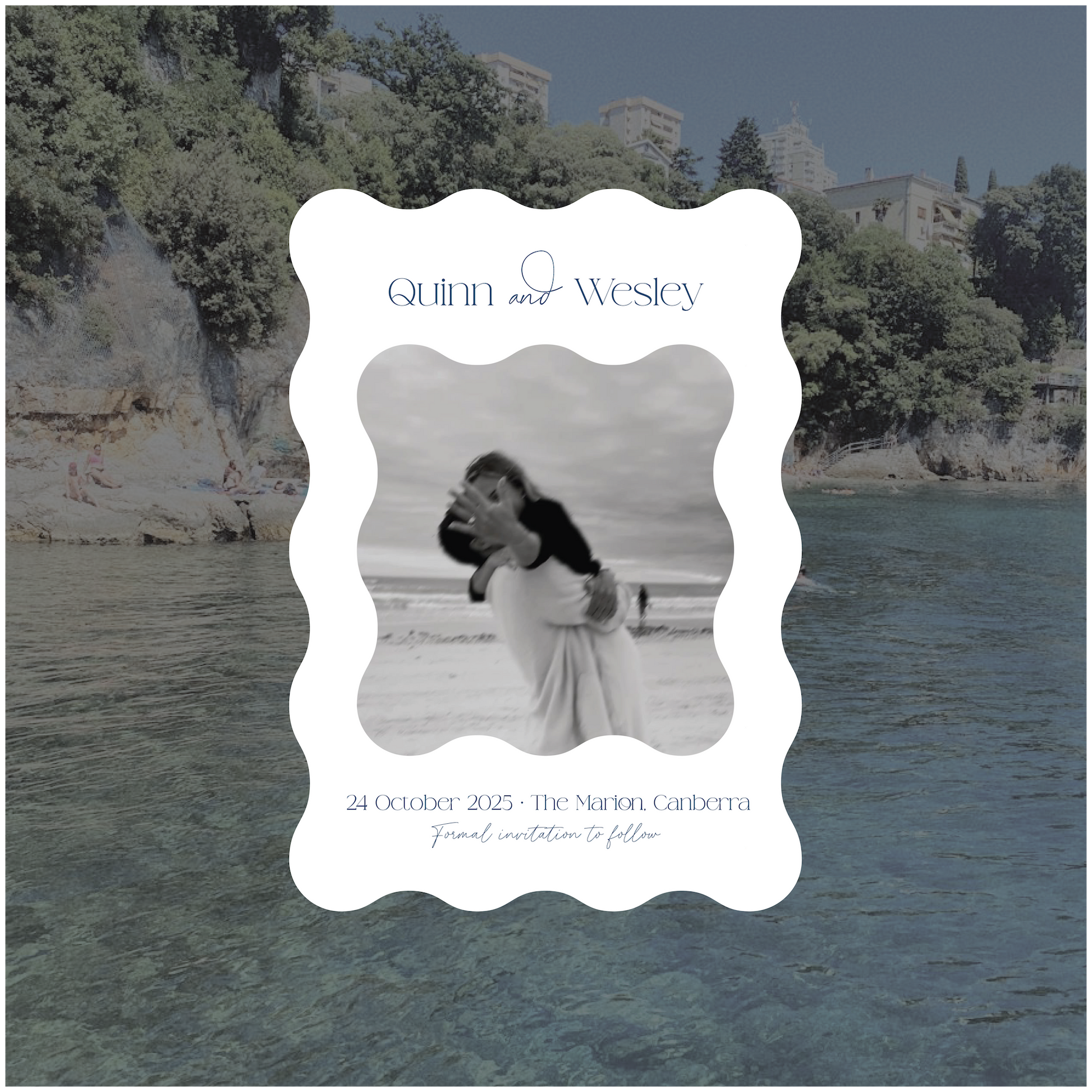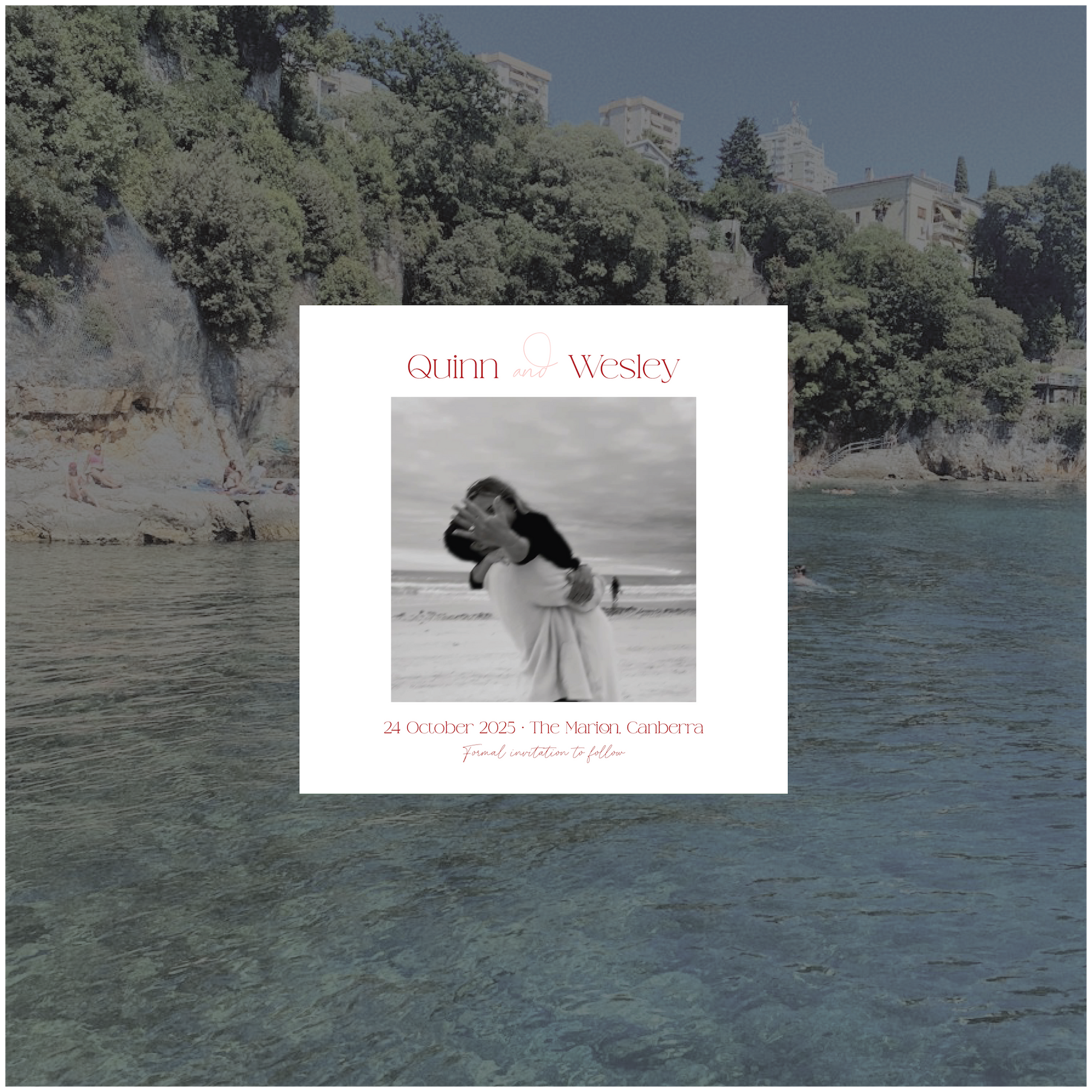 Part of the Croatia Collection, this save the date wedding invite is modern, romantic and a little bit fun with it's script elements and photo detail. This design is only available on white cardstock because of the photo element.
