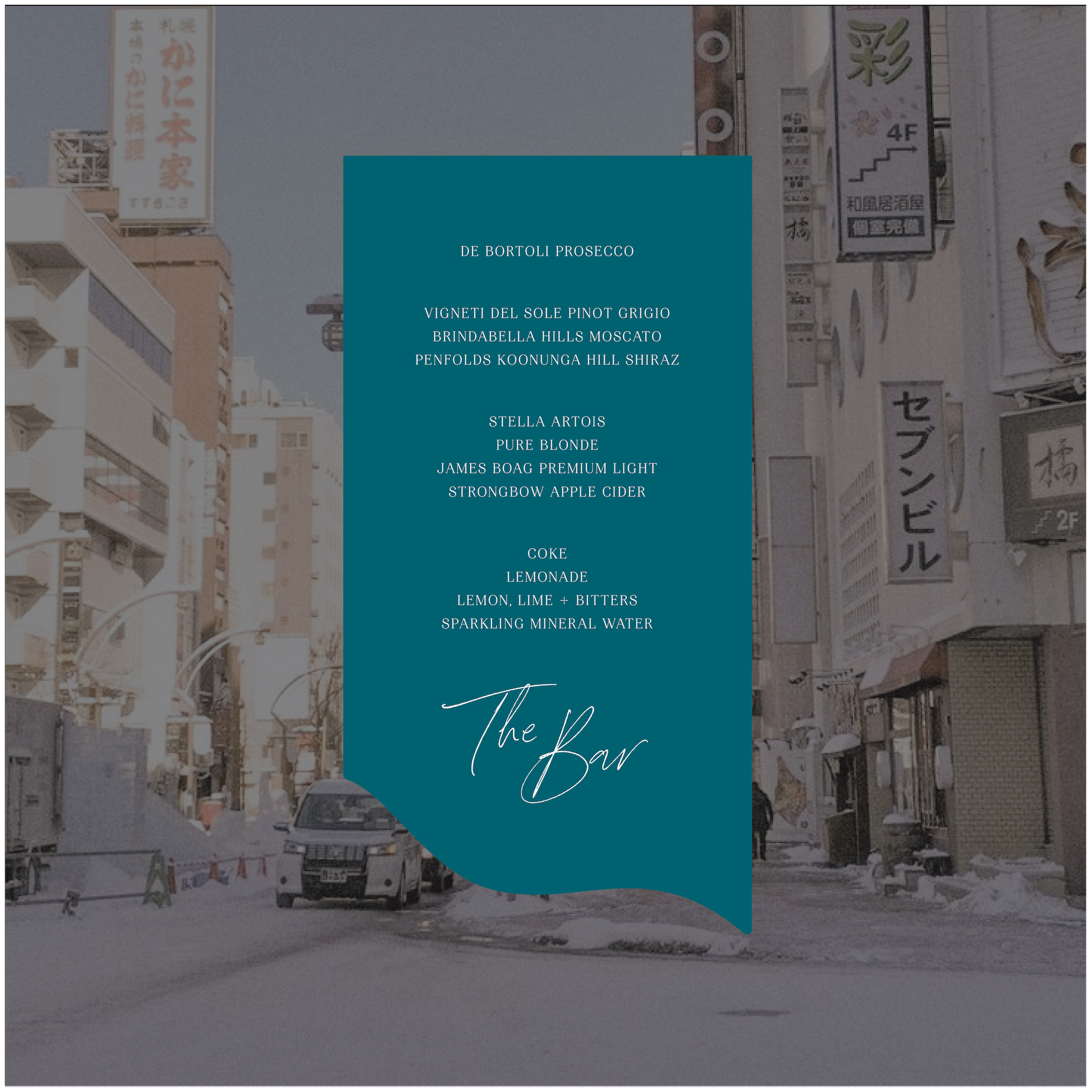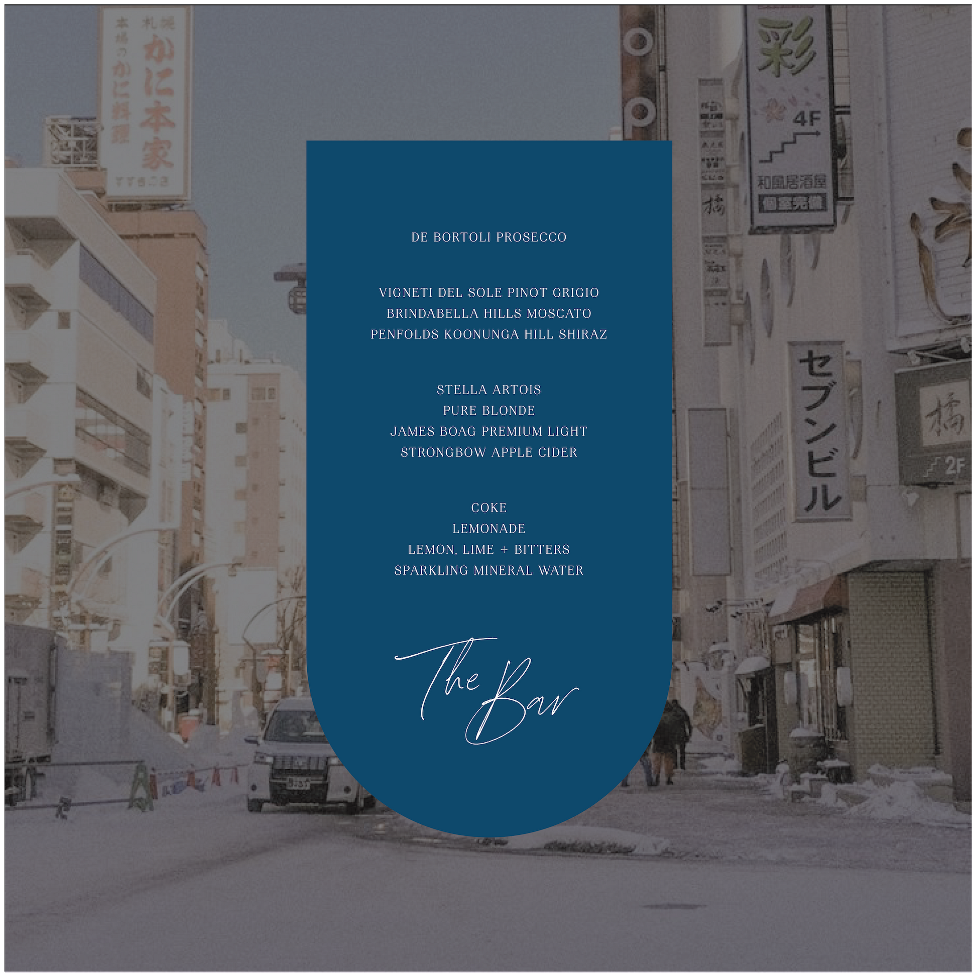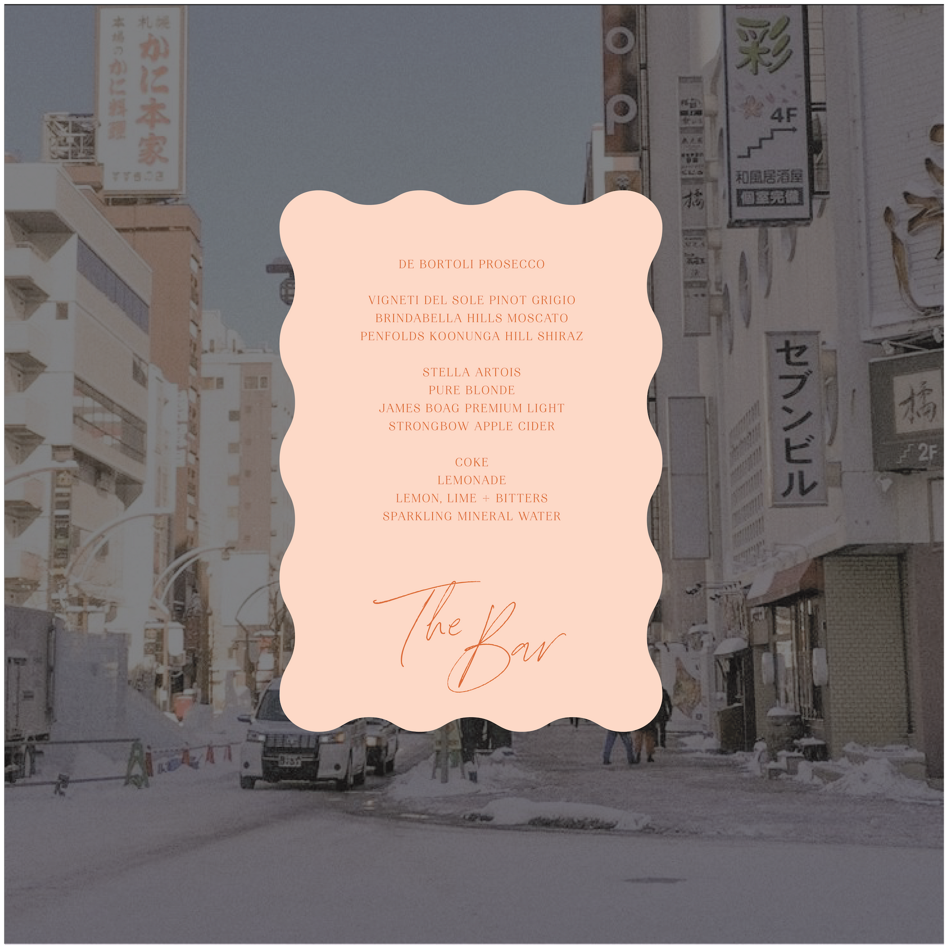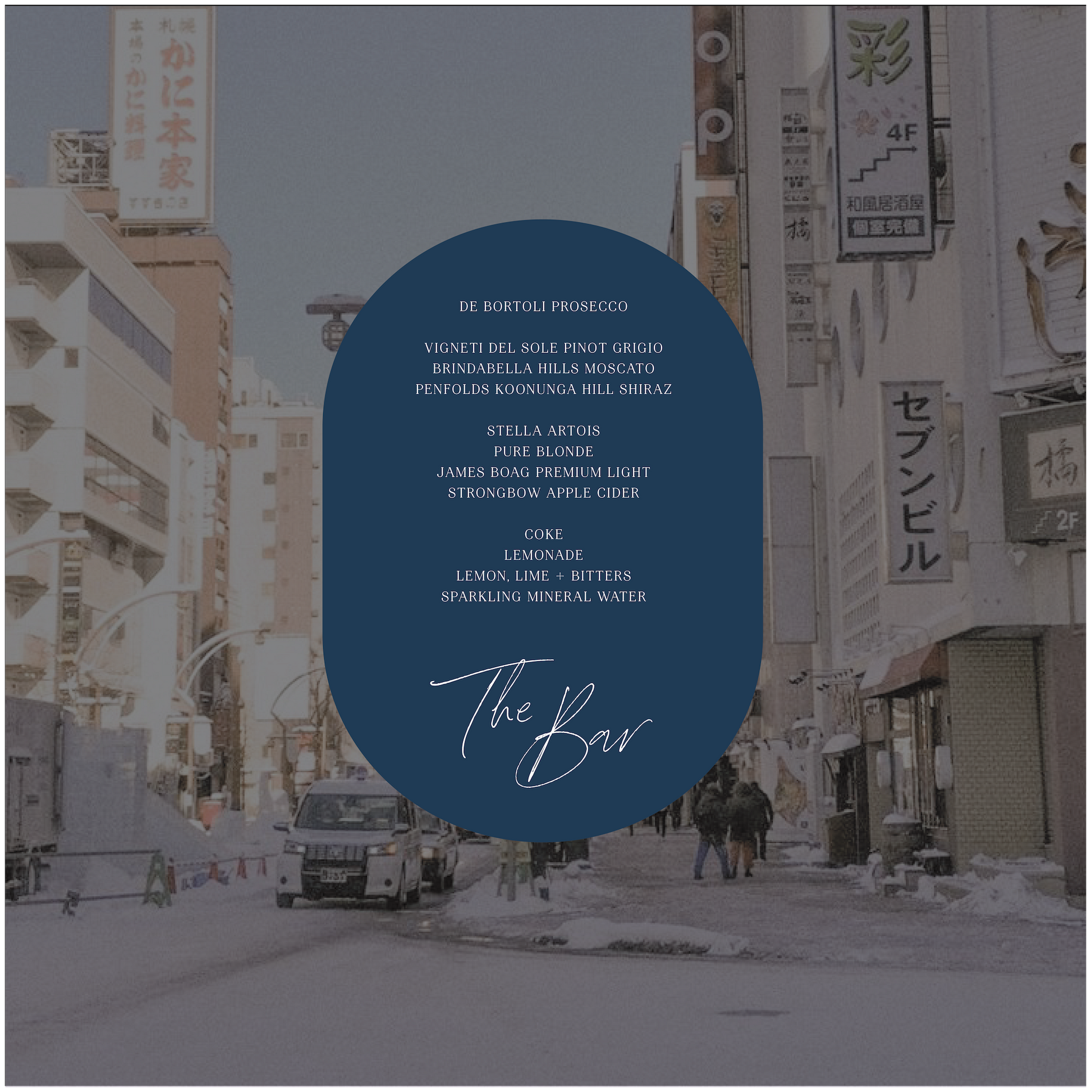Part of the Japan Collection, this bar sign is giving whimsical, romantic vibes with a combination of cursive font and modern body text.