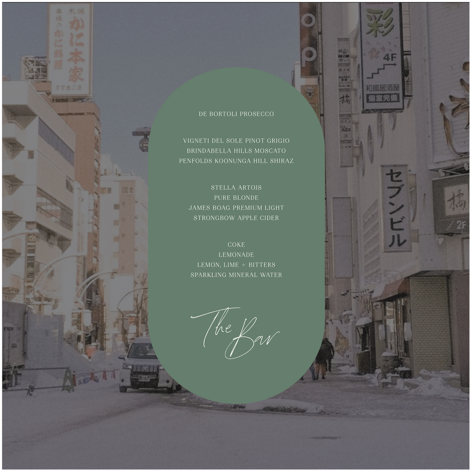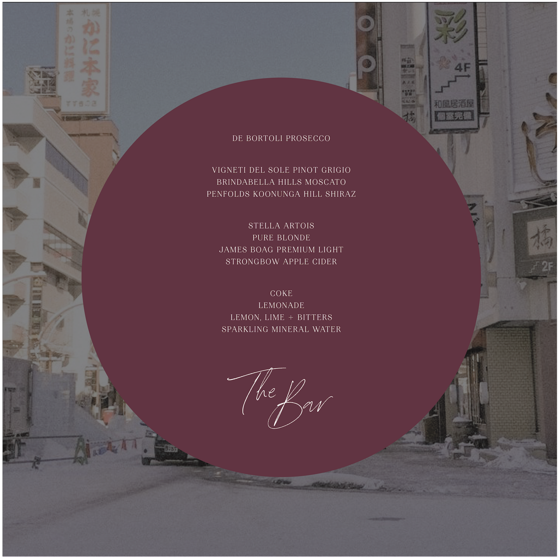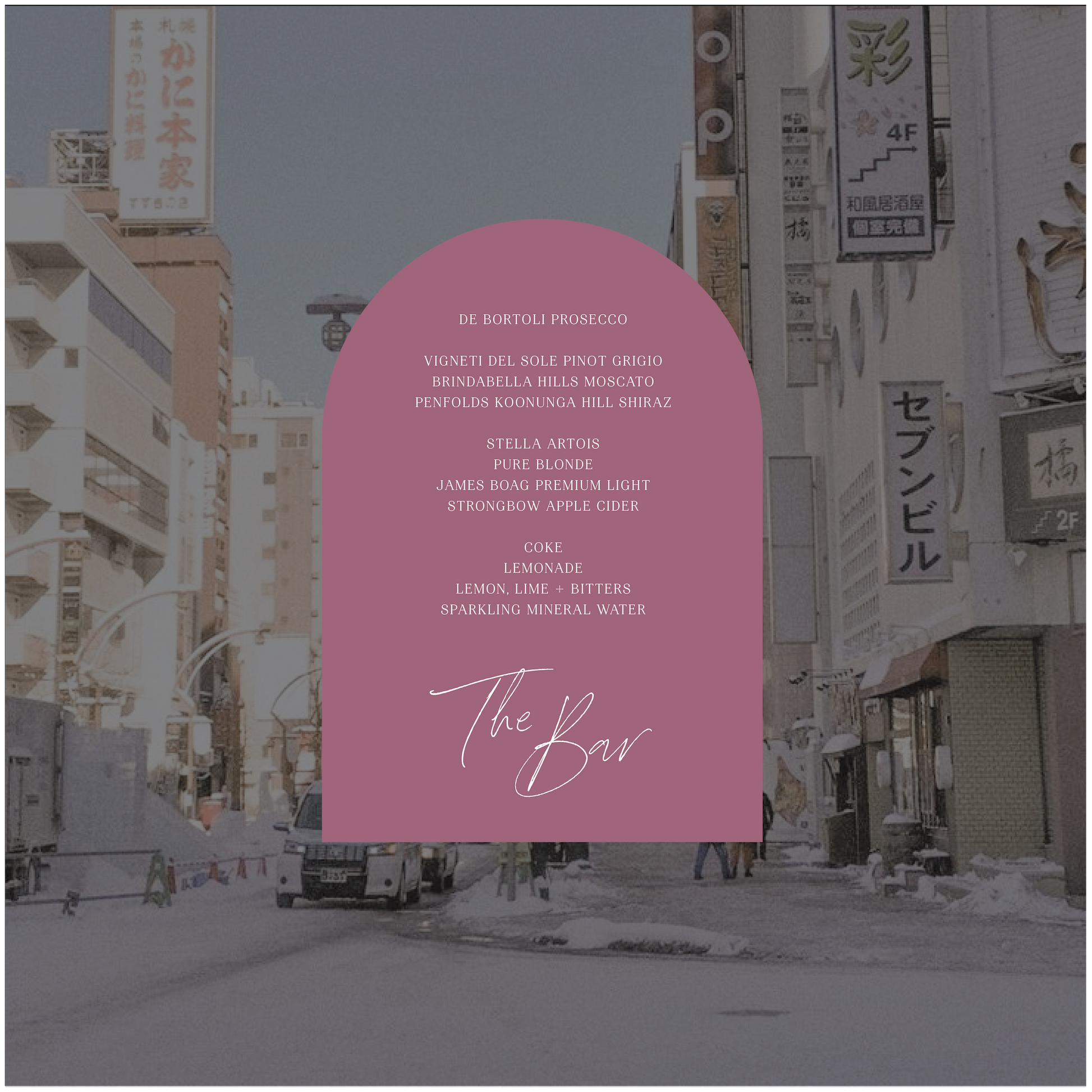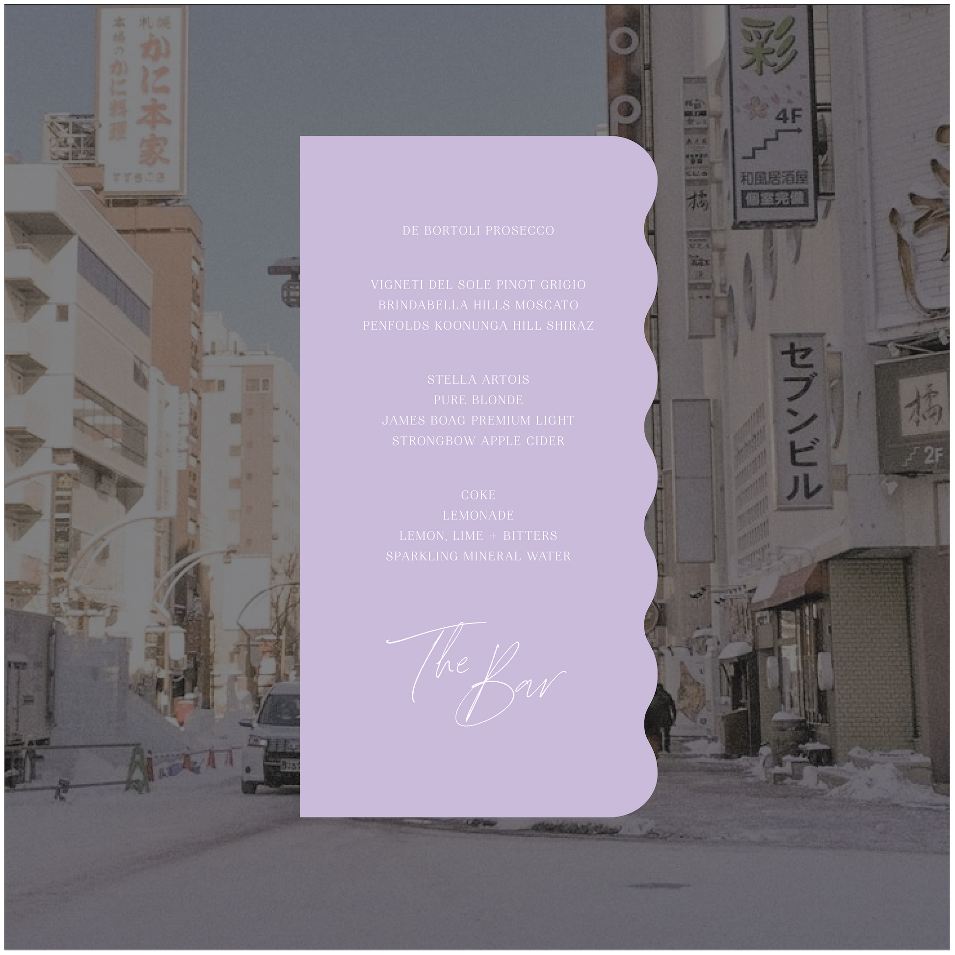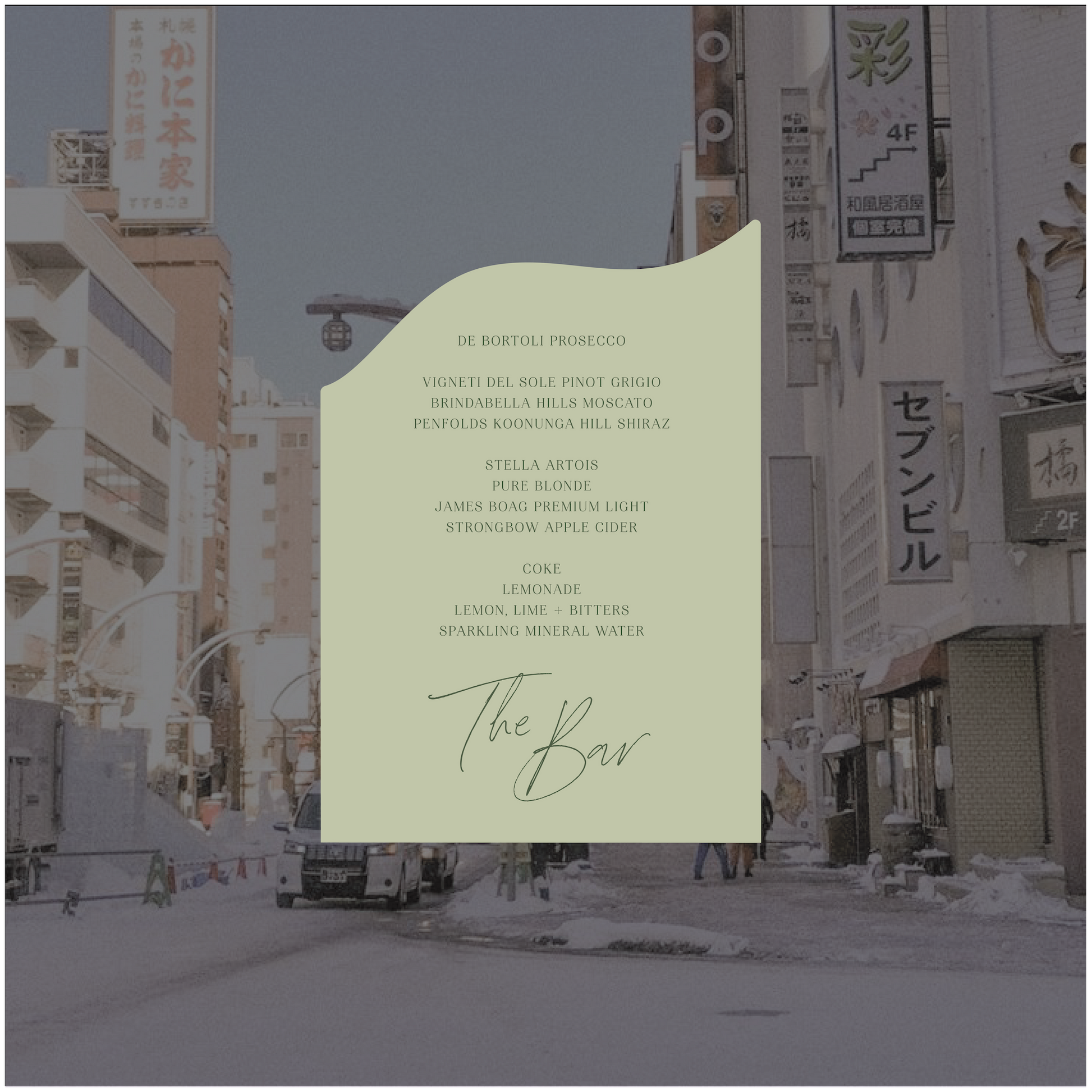 Part of the Japan Collection, this bar sign is giving whimsical, romantic vibes with a combination of cursive font and modern body text.