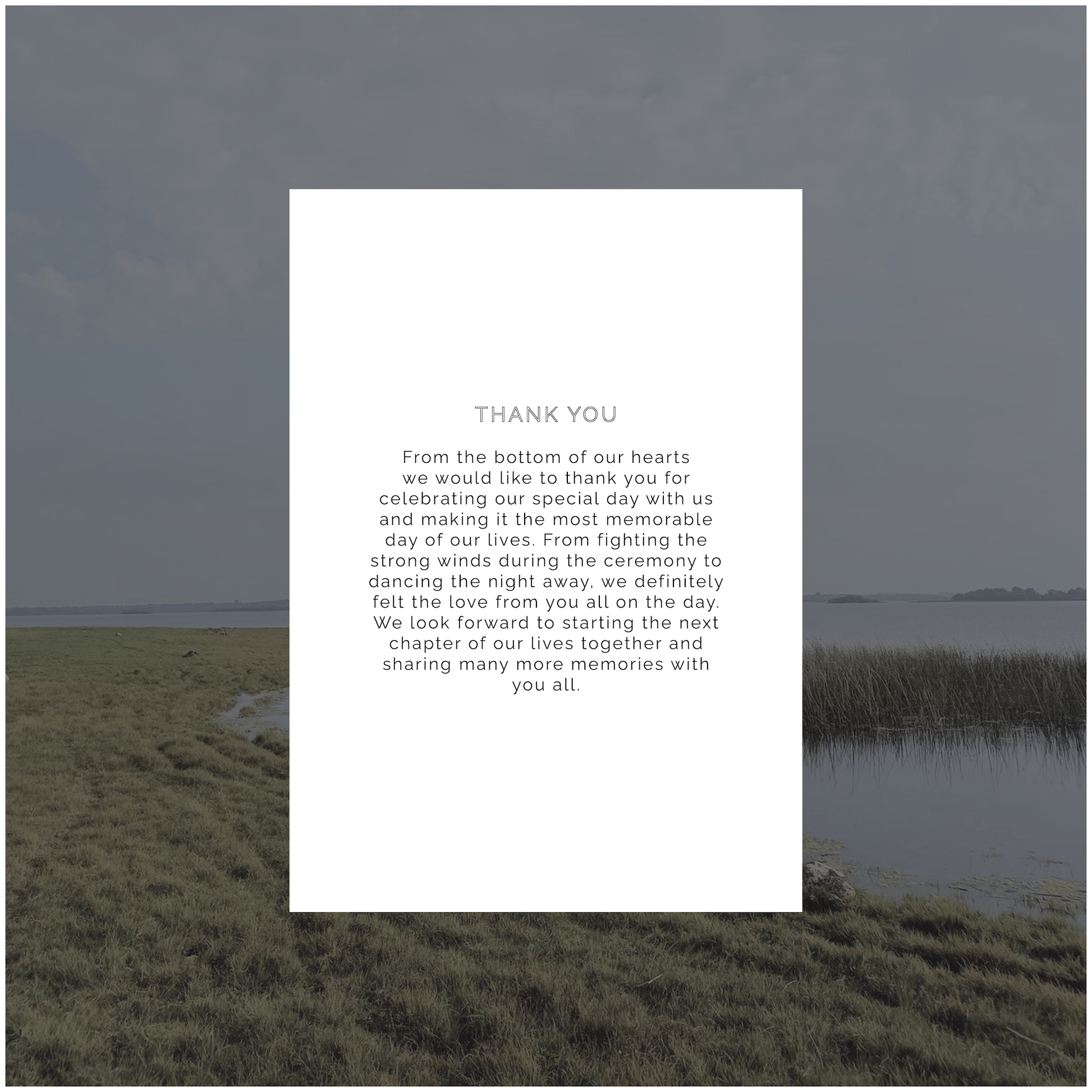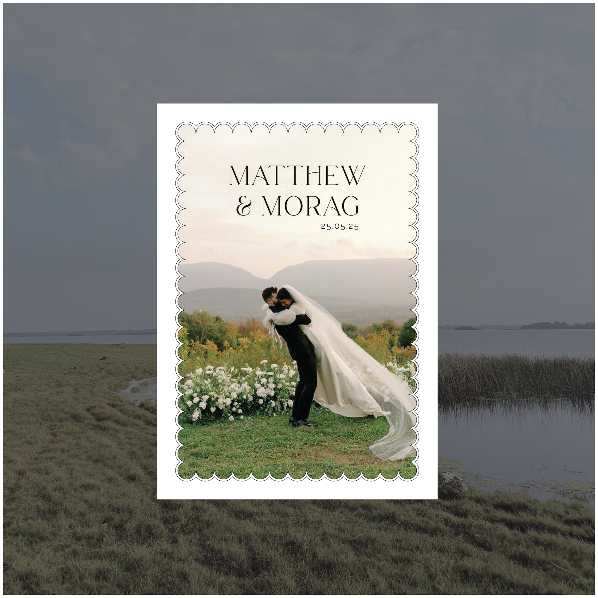 Part of the Ireland Collection, this thank you card is a timeless classic with a little bit of edge. Featuring a scalloped border to mimic a four leaf clover curved shape this is the perfect piece to send to your guests as a final thank you for being apart of your epic celebration.