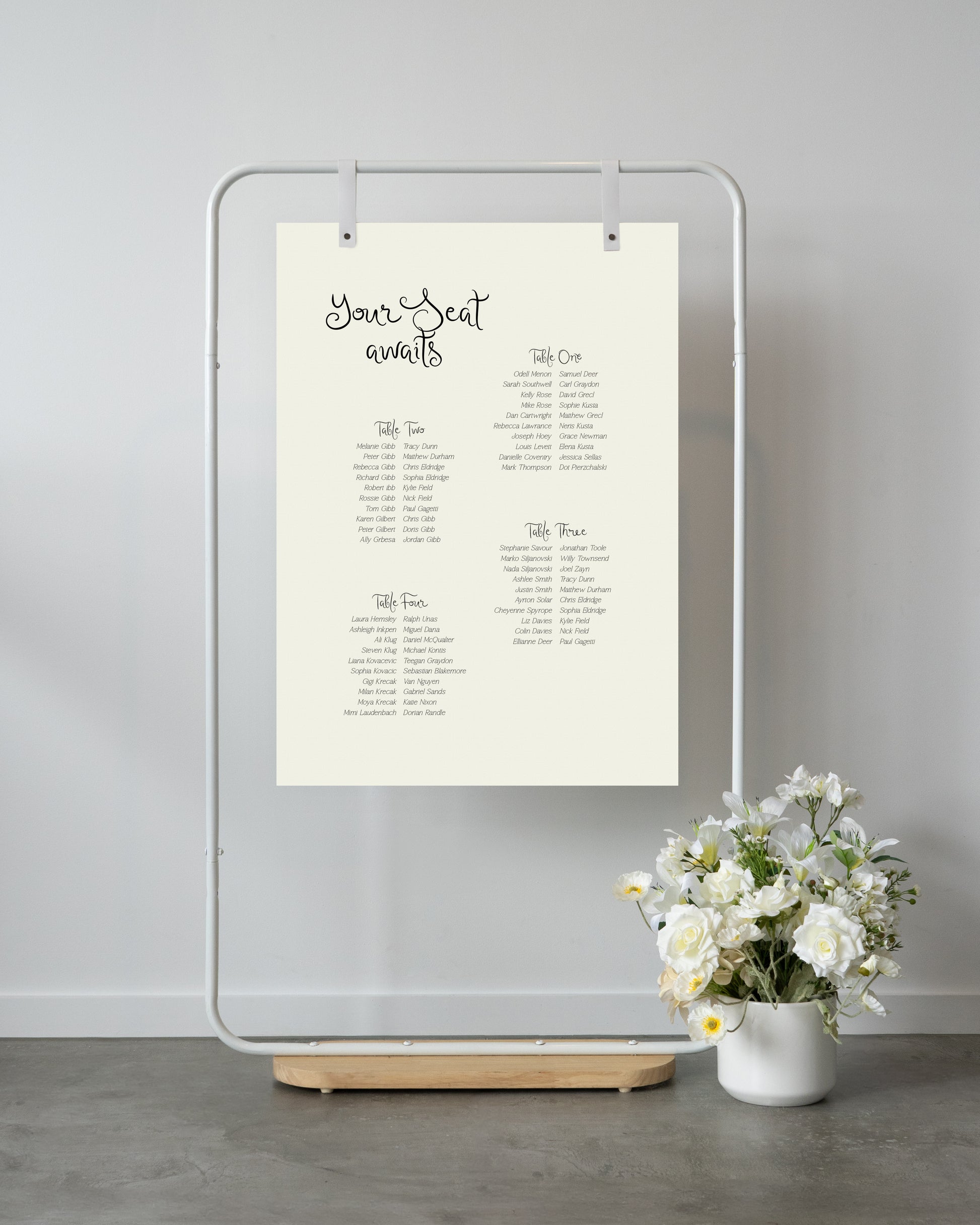 For all seating charts we require you to use our excel template for your guests names and table allocation. This can either be emailed to us after placing the order or within the timeframes provided.