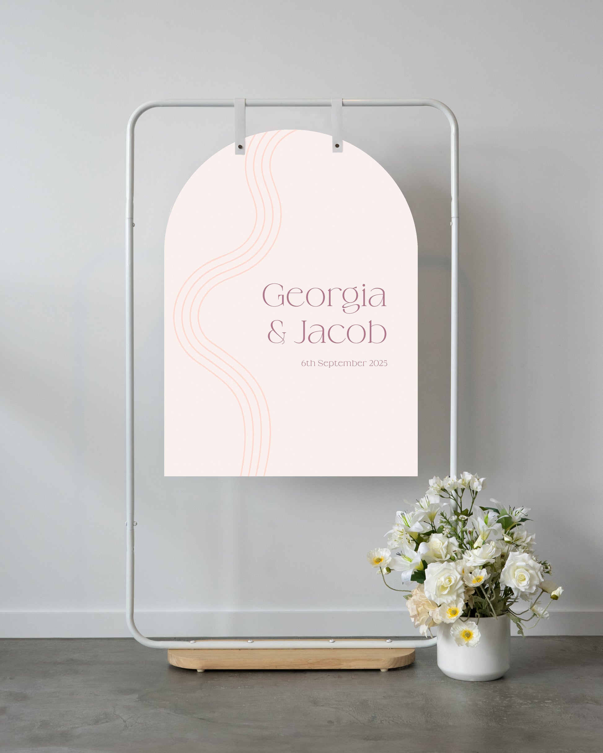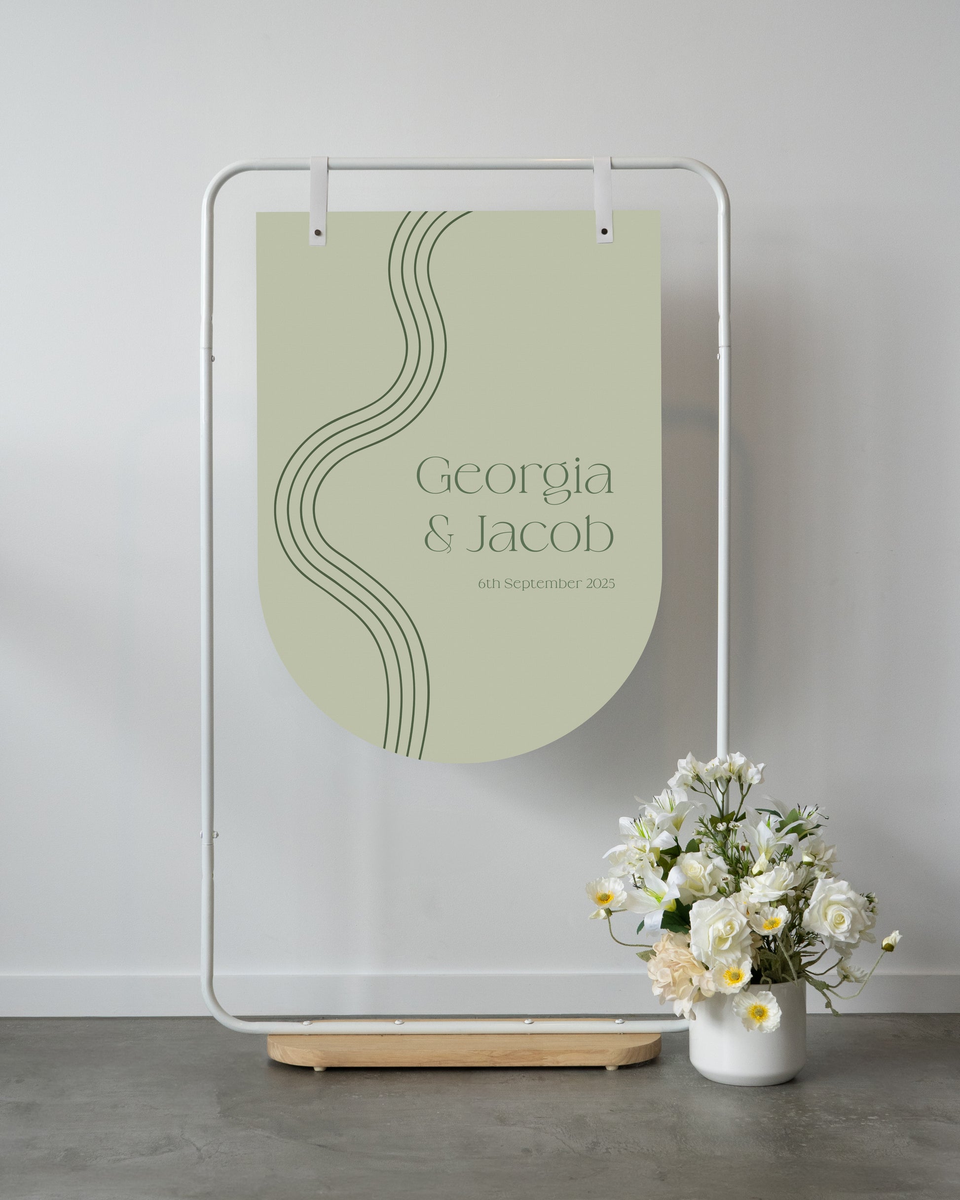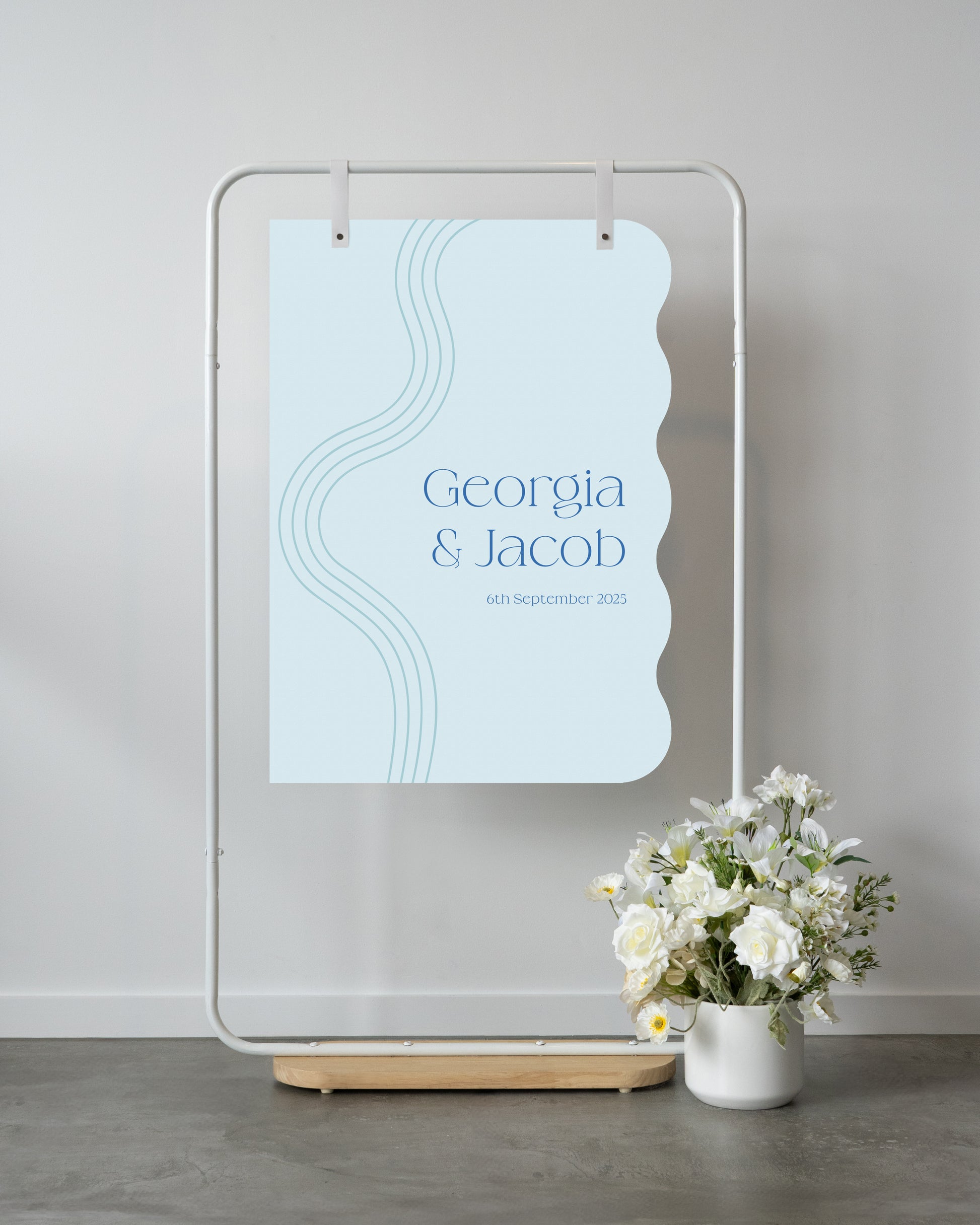 Part of the Australia collection, this wedding welcome sign has gorgeous wave line elements that run from the top of the design down the page, creating natural framed curves around the text.
