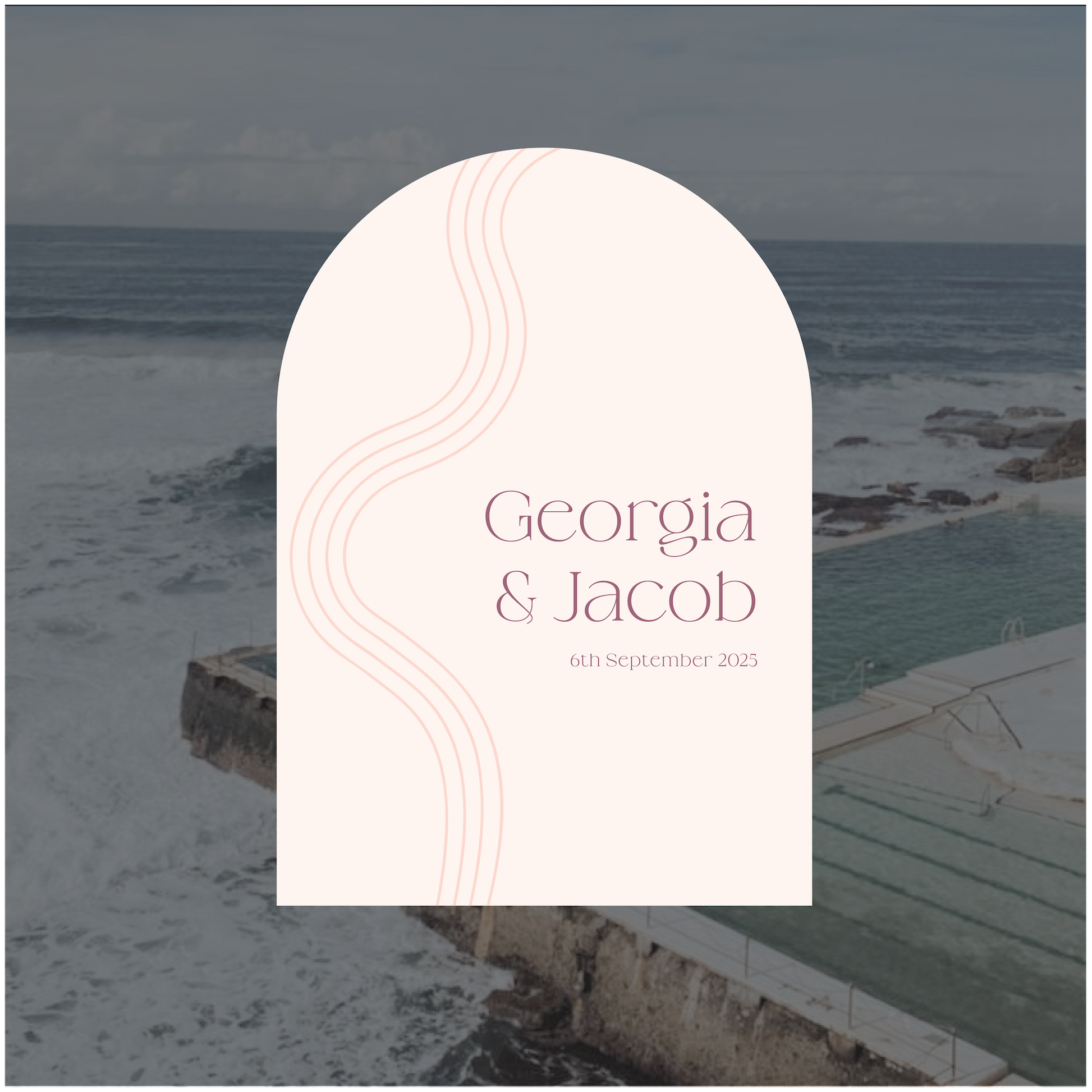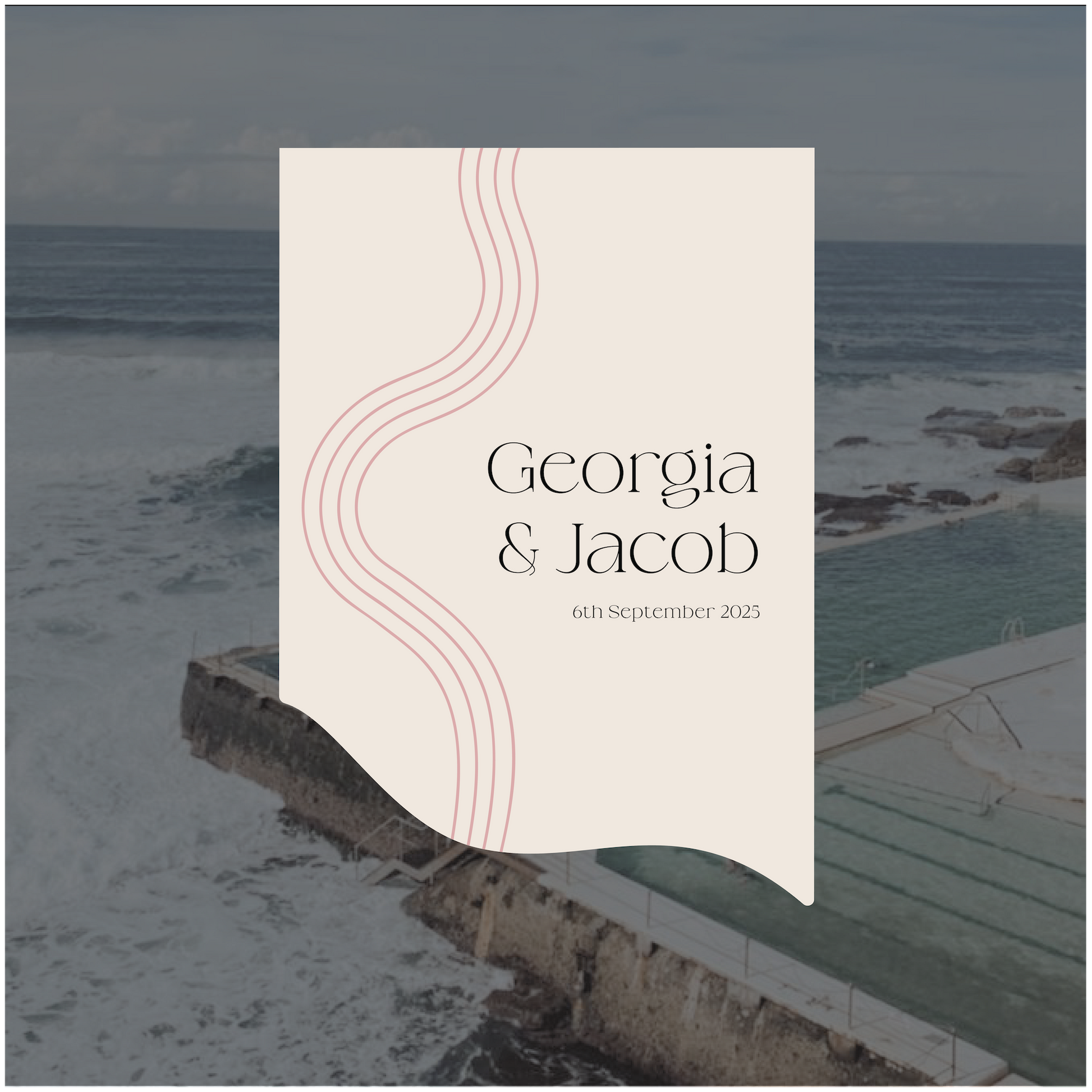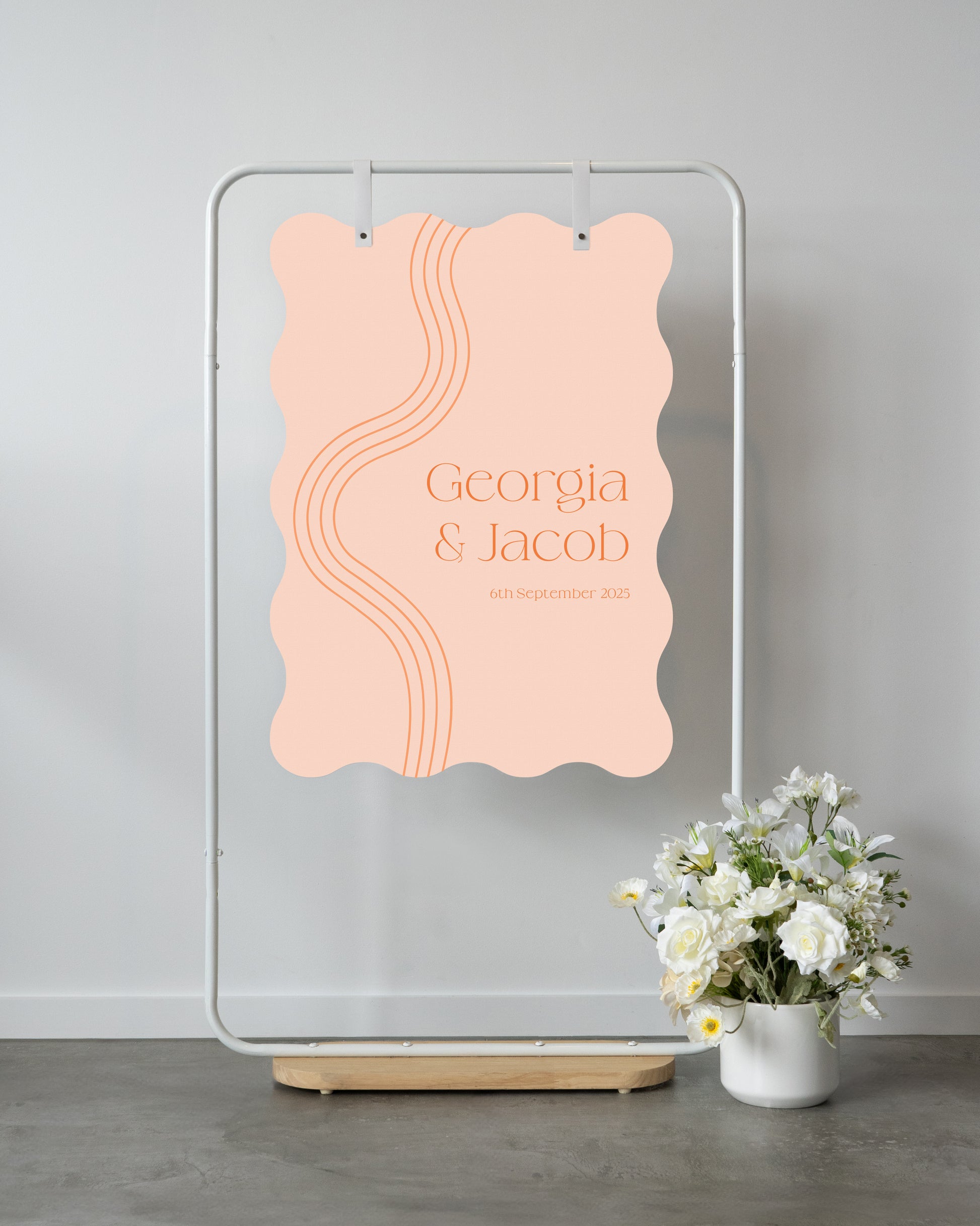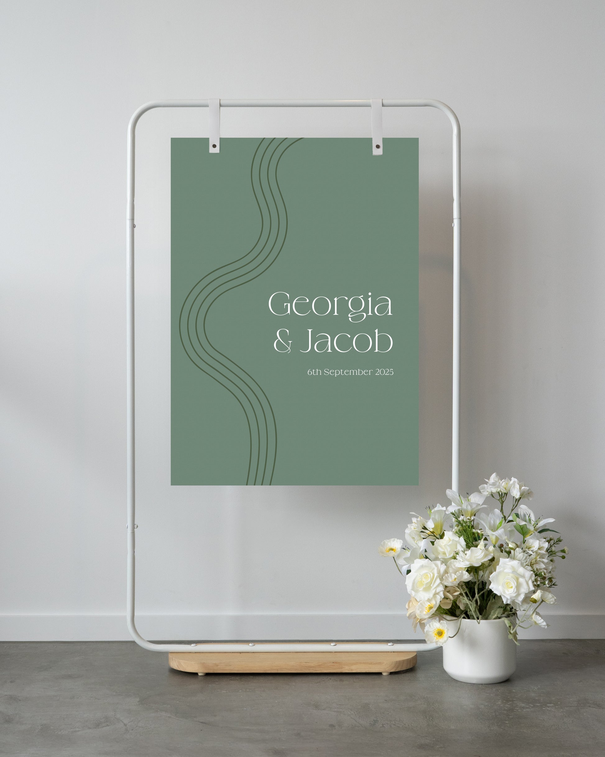 Part of the Australia collection, this wedding welcome sign has gorgeous wave line elements that run from the top of the design down the page, creating natural framed curves around the text.