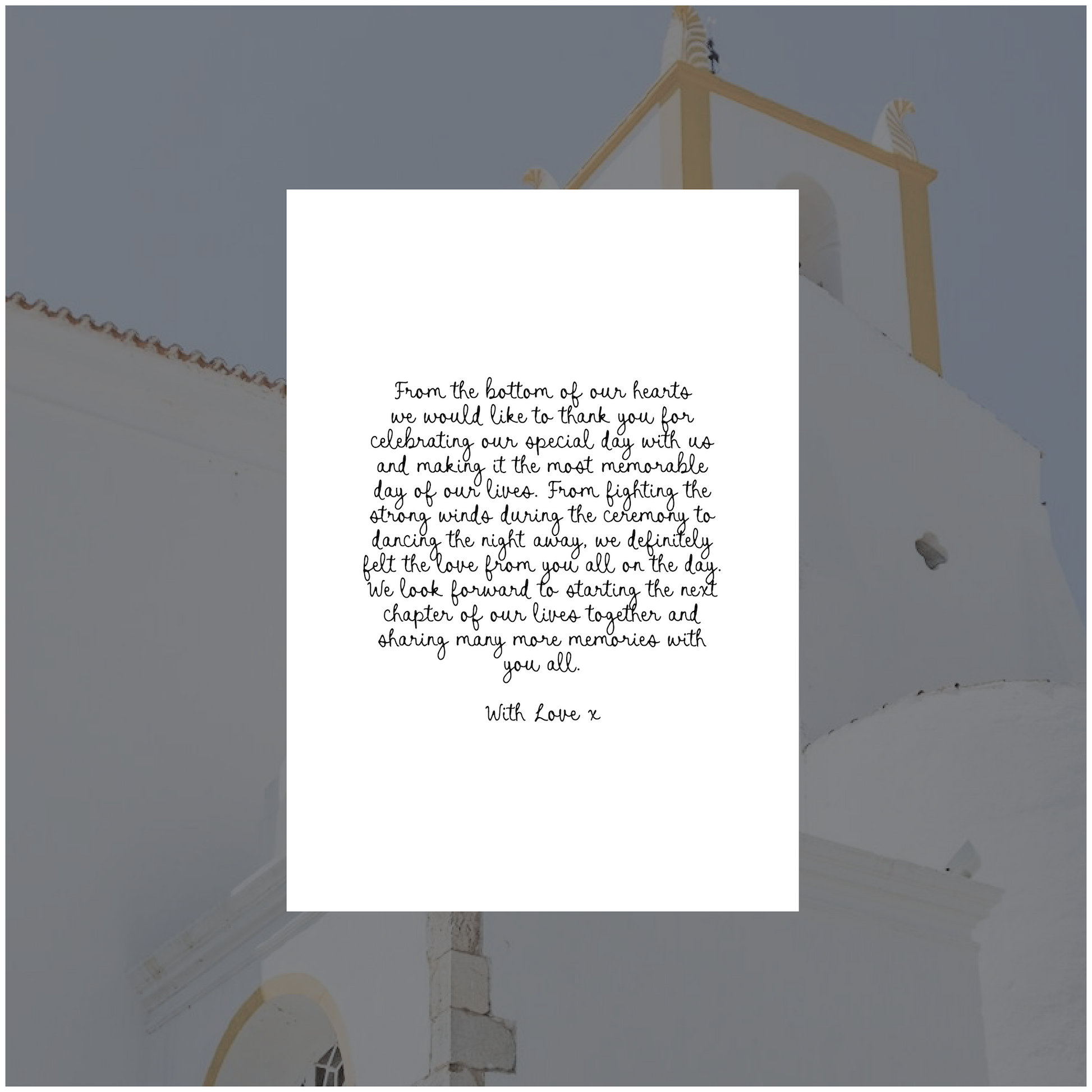 Part of the Portugal Collection, this digital thank you card with it's handwritten fonts and playful graphics is the perfect, fun modern piece to send to your guests as a final thank you for being apart of your epic celebration.