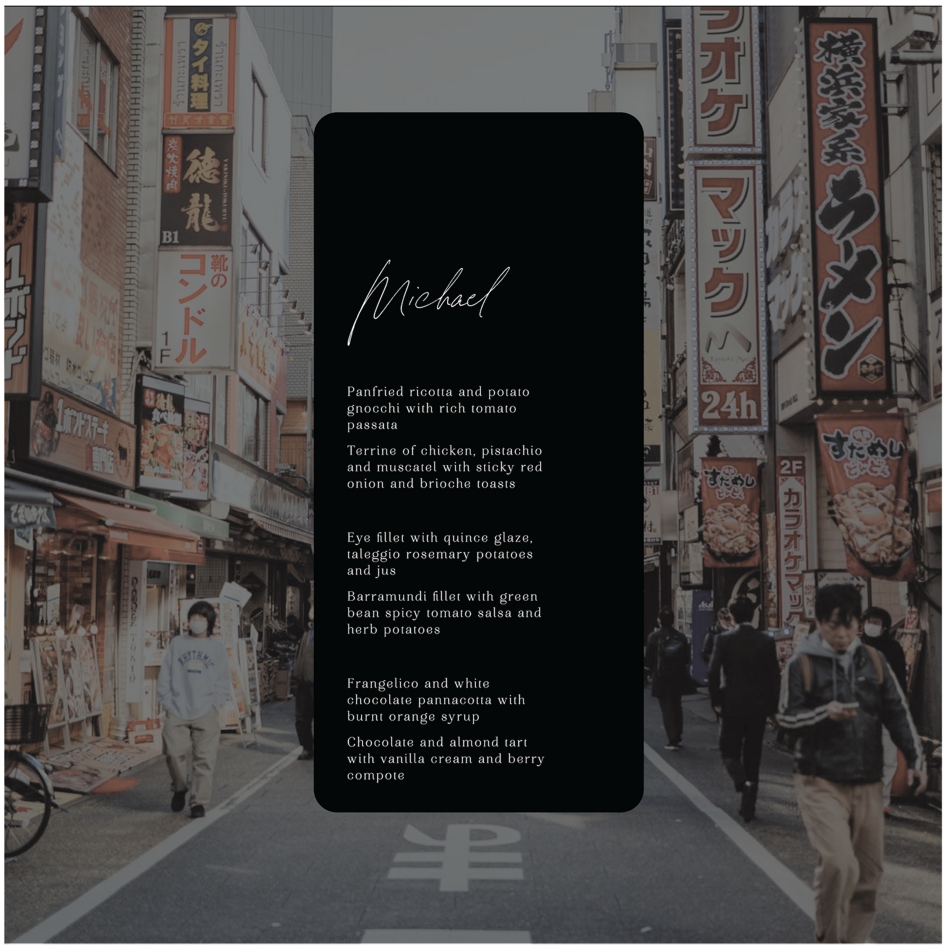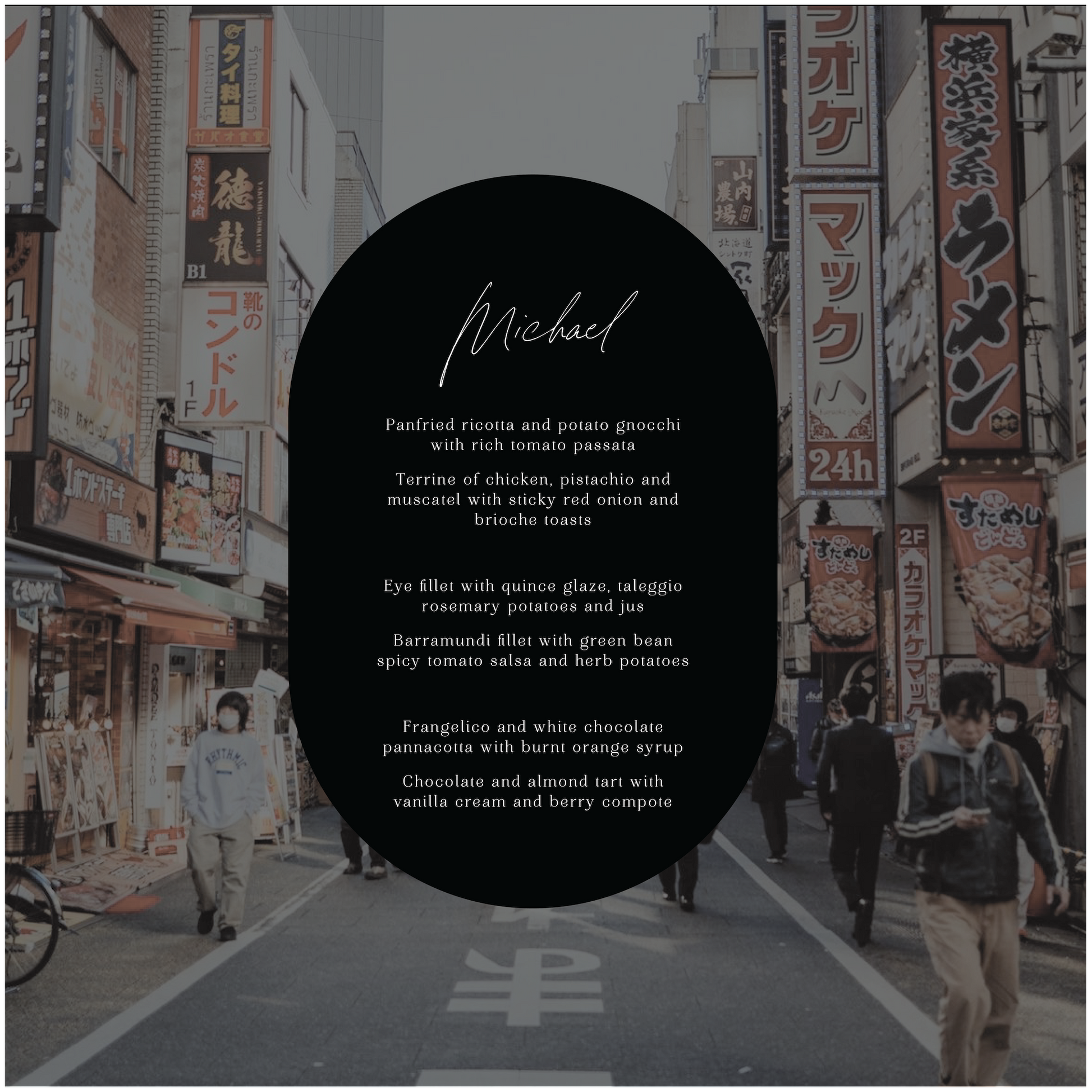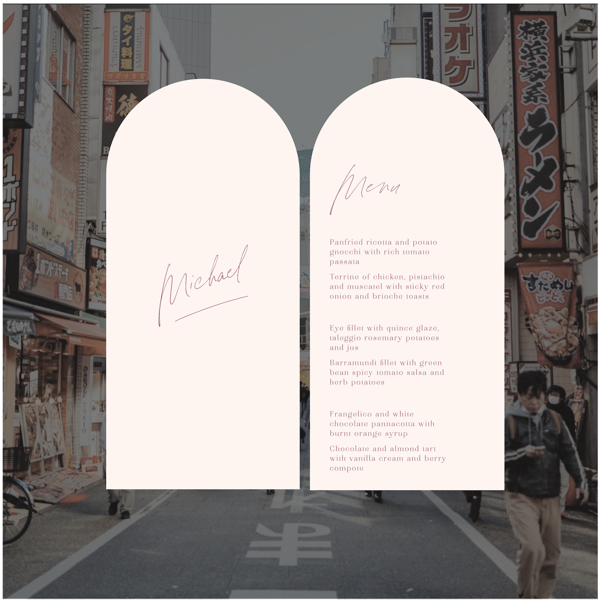 Part of the Japan Collection, this menu is giving whimsical, romantic vibes with a combination of cursive font and modern body text.