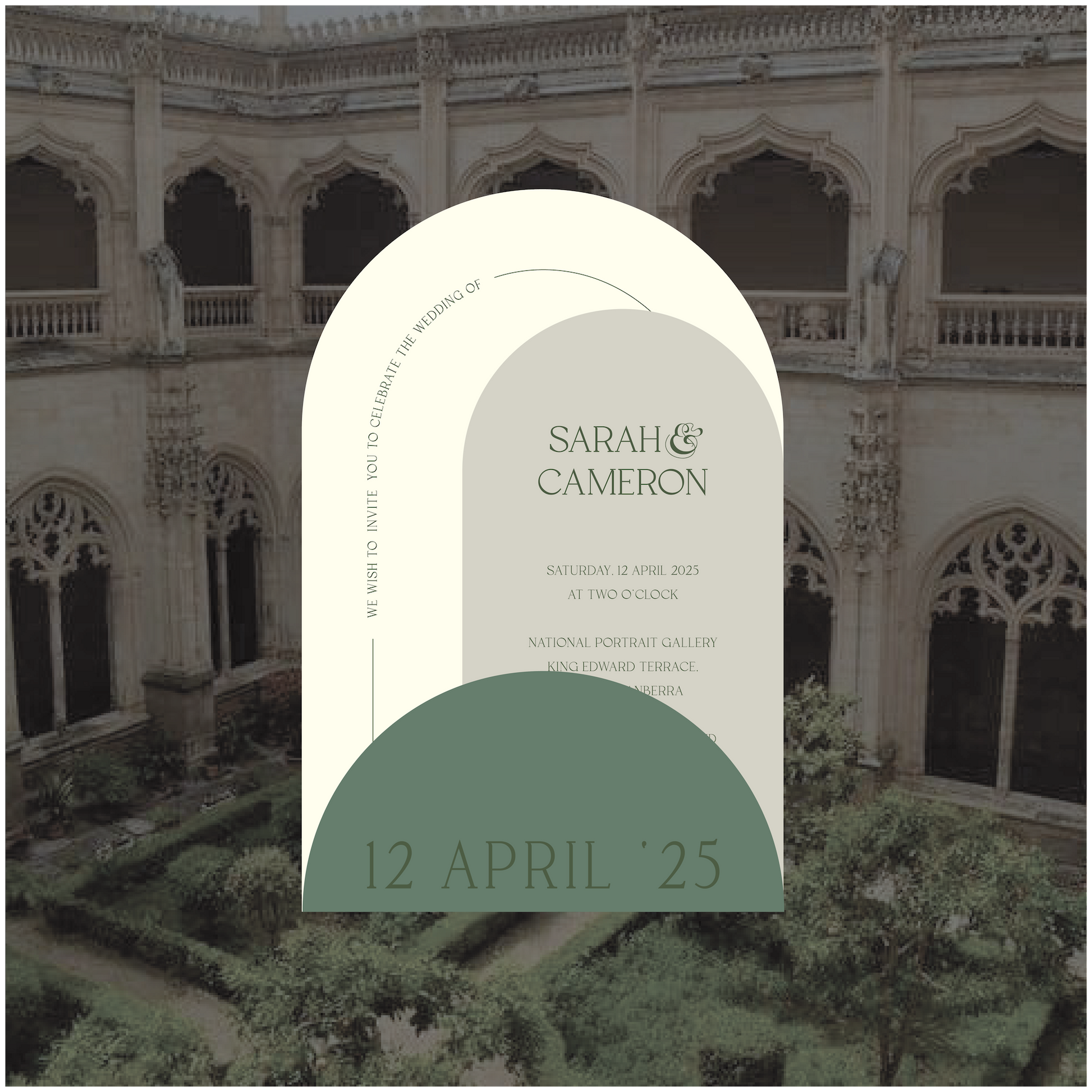 Part of the Spain Collection, this stacked wedding invite is curvy in all the right ways. With three arches, funky text and a clean border that shows throughout the design.