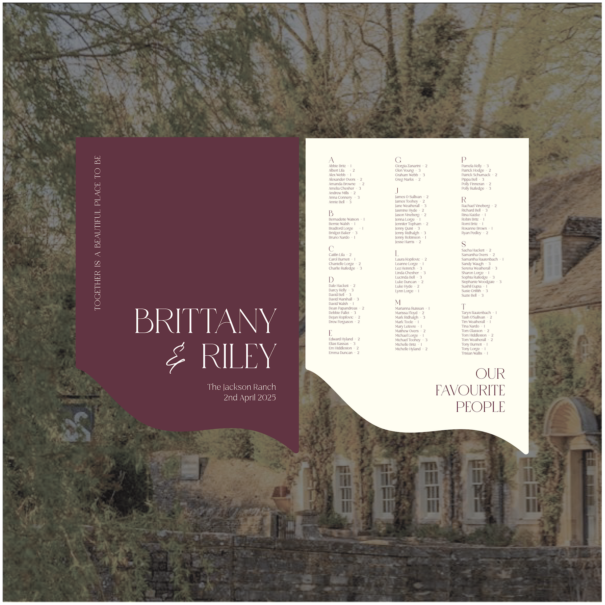 If you have over this number of guests and order a sign too small, a design fee may occur to re-work the design to fit the names.