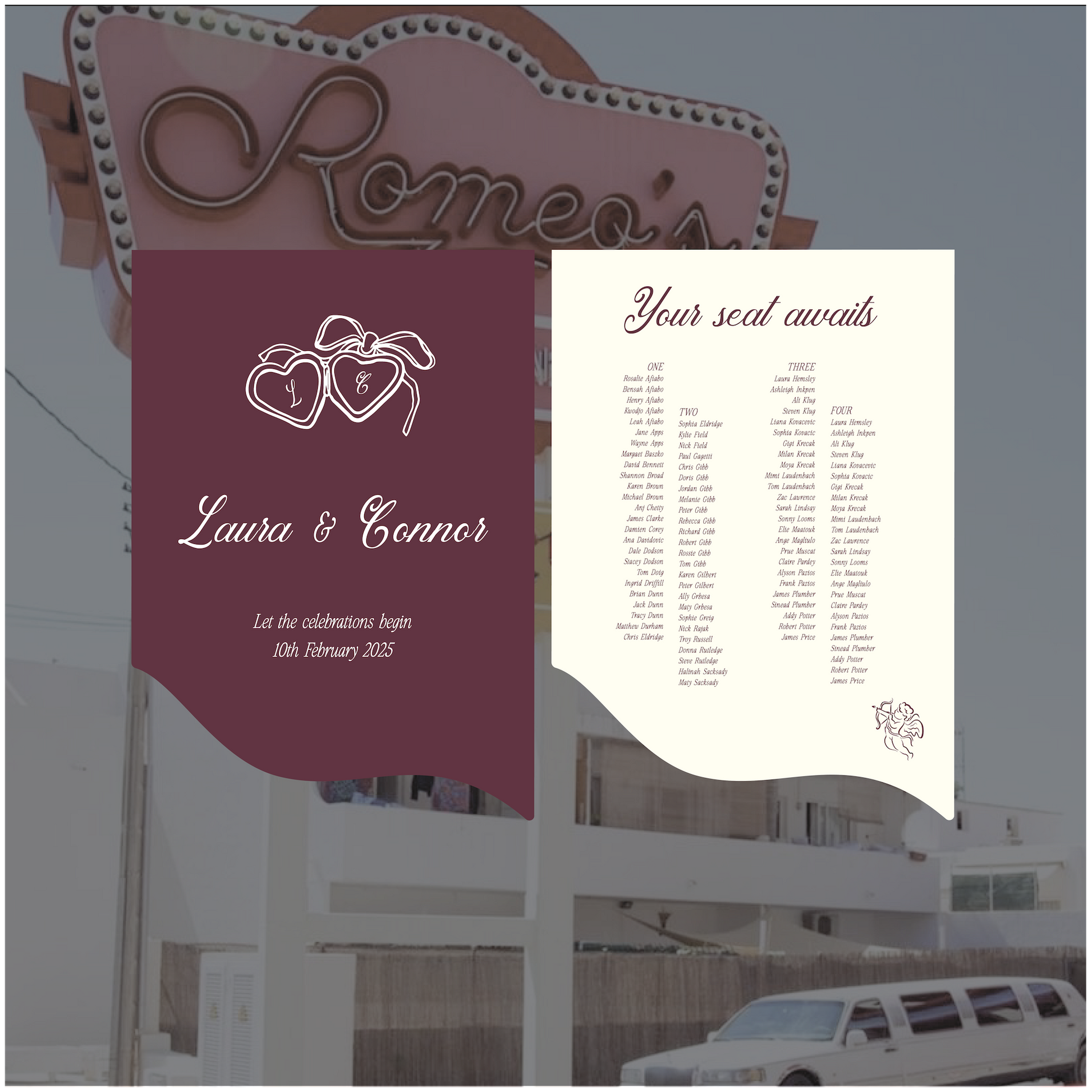 For all seating charts we require you to use our excel template for your guests names and table allocation. This can either be emailed to us after placing the order or within the timeframes provided.