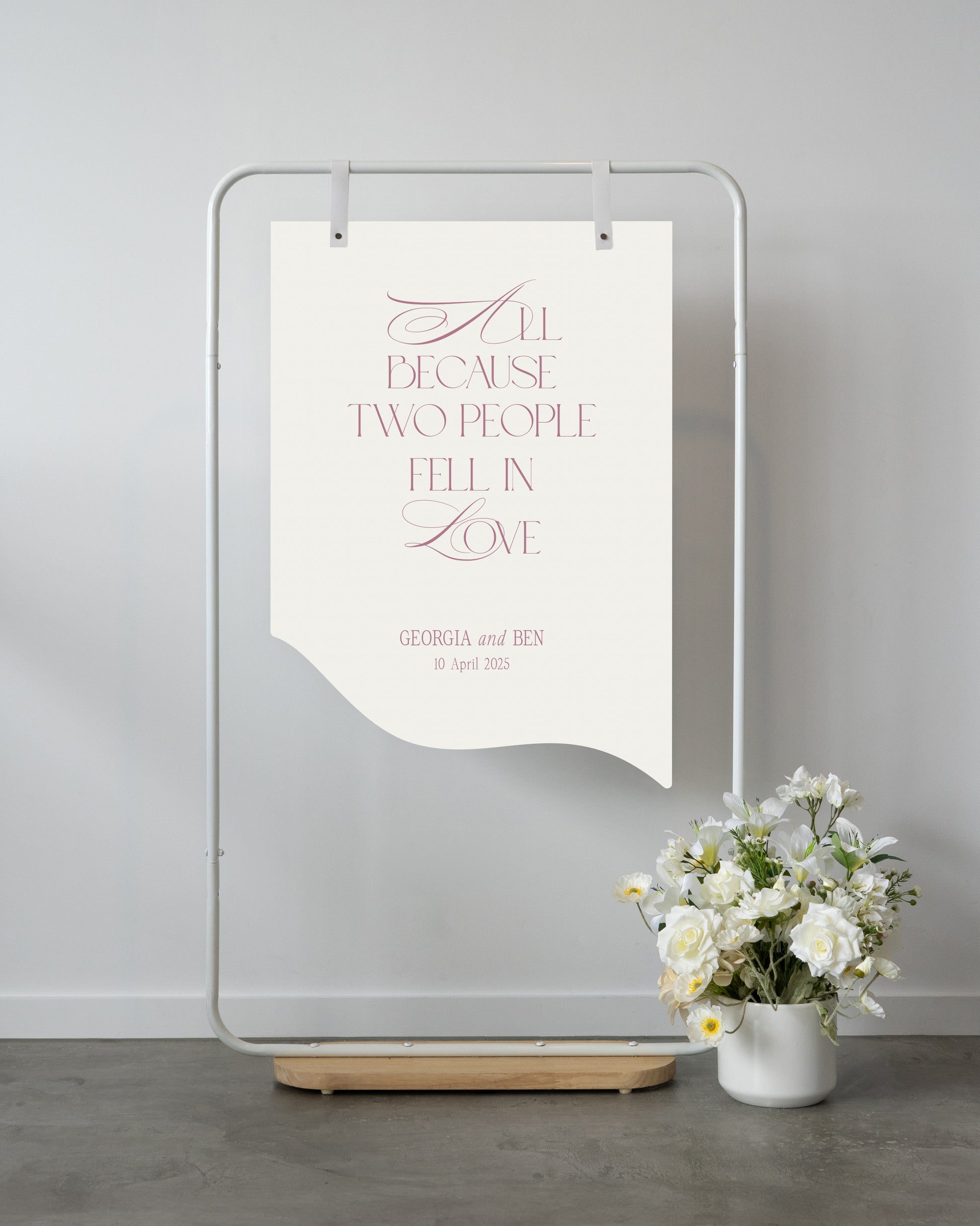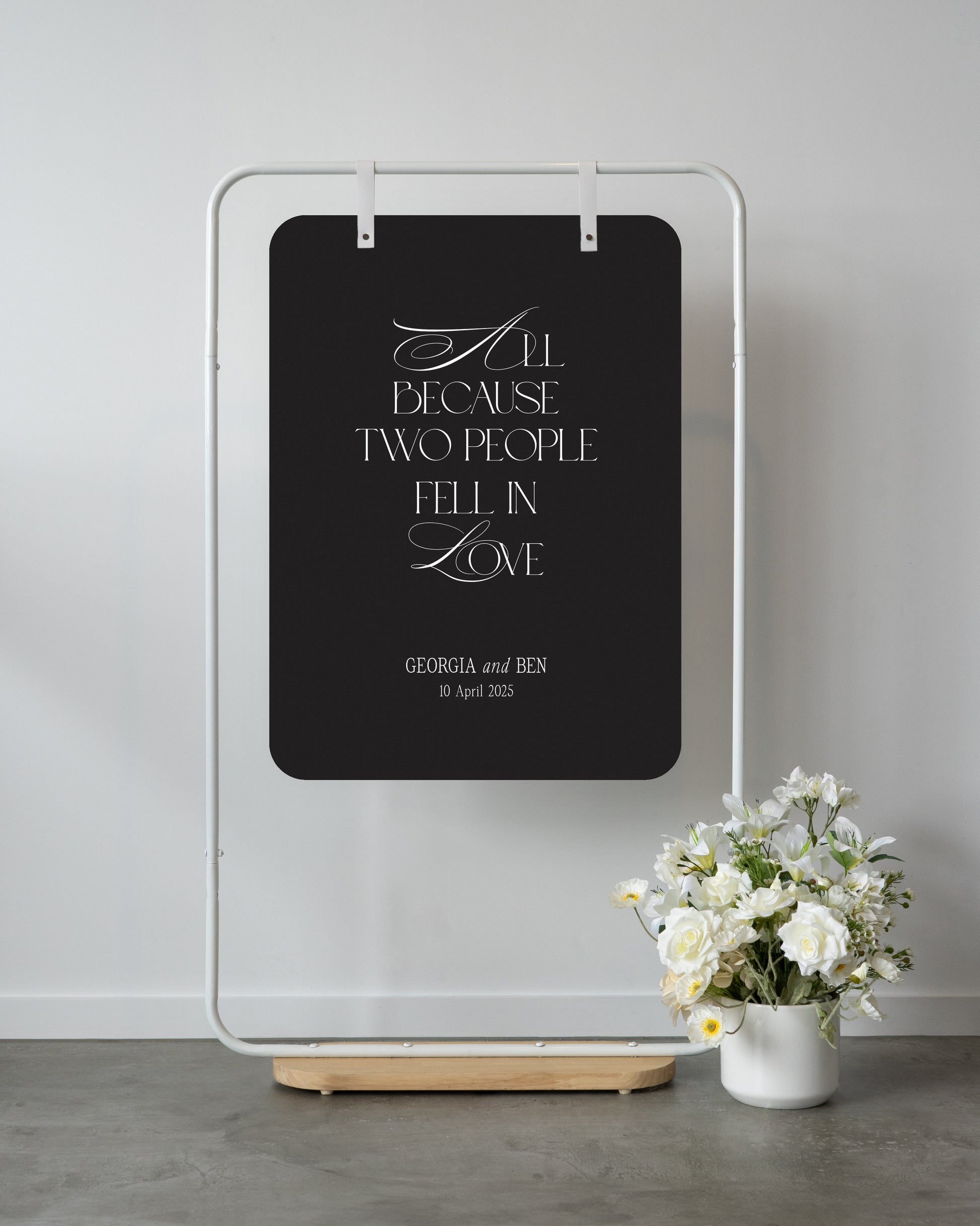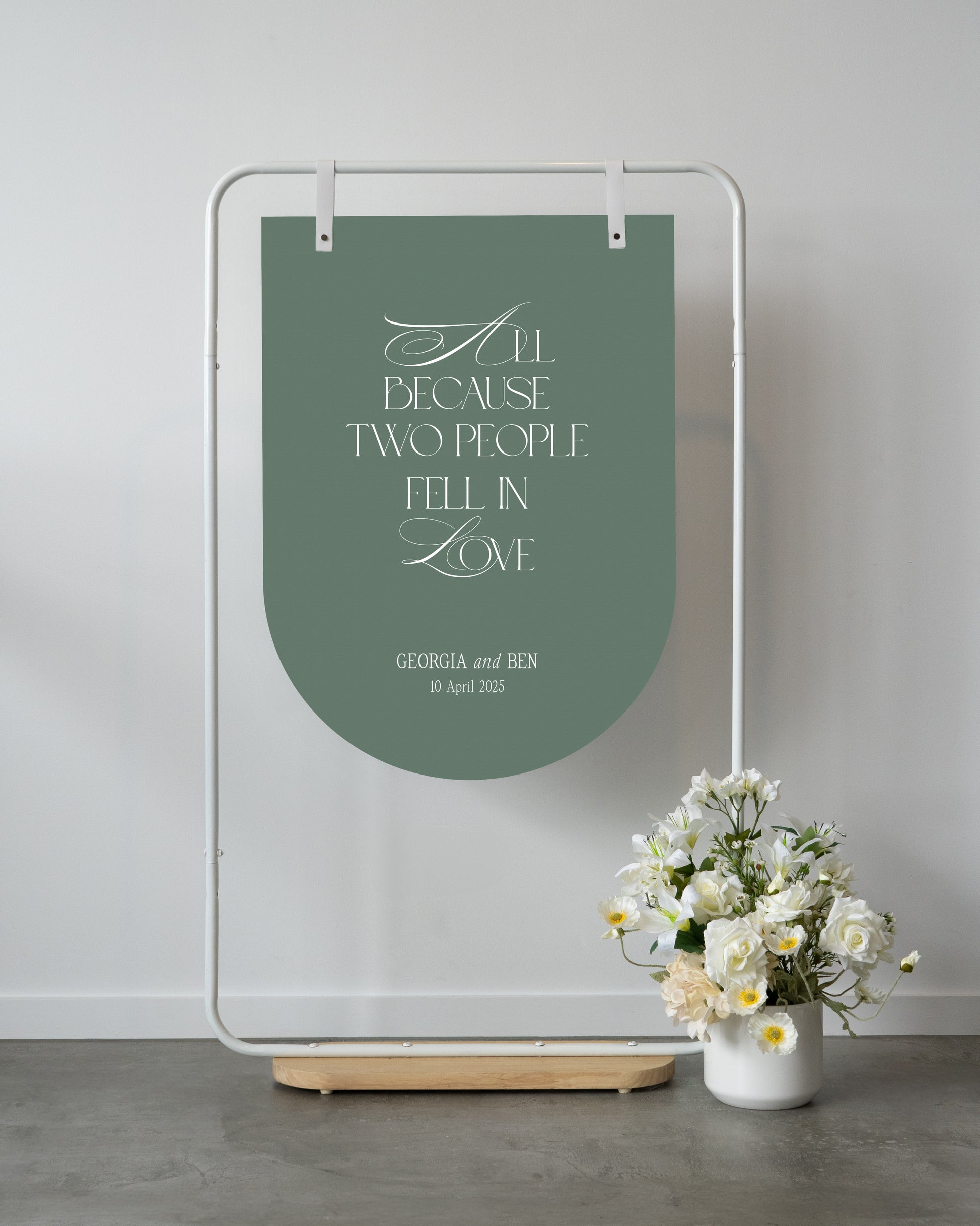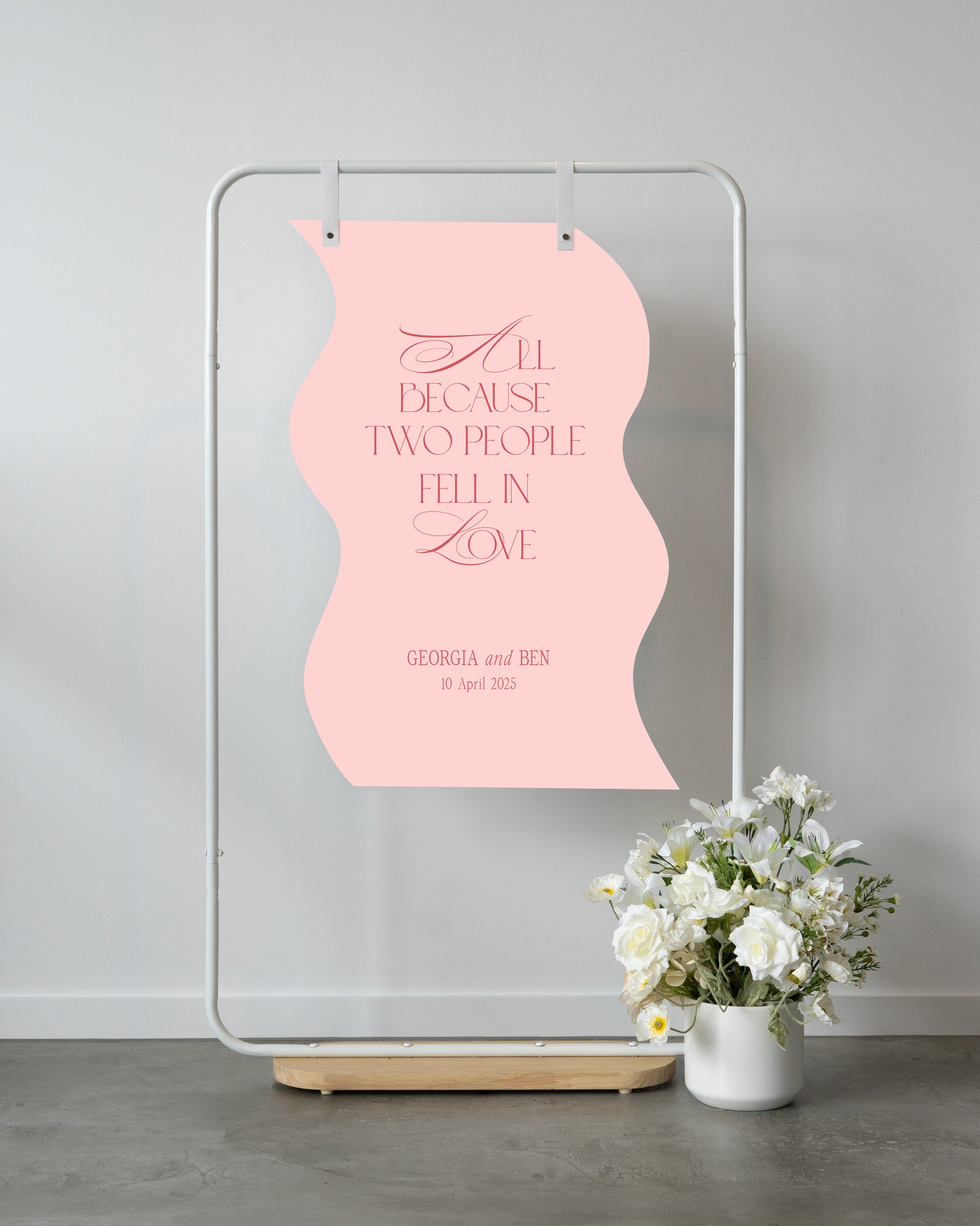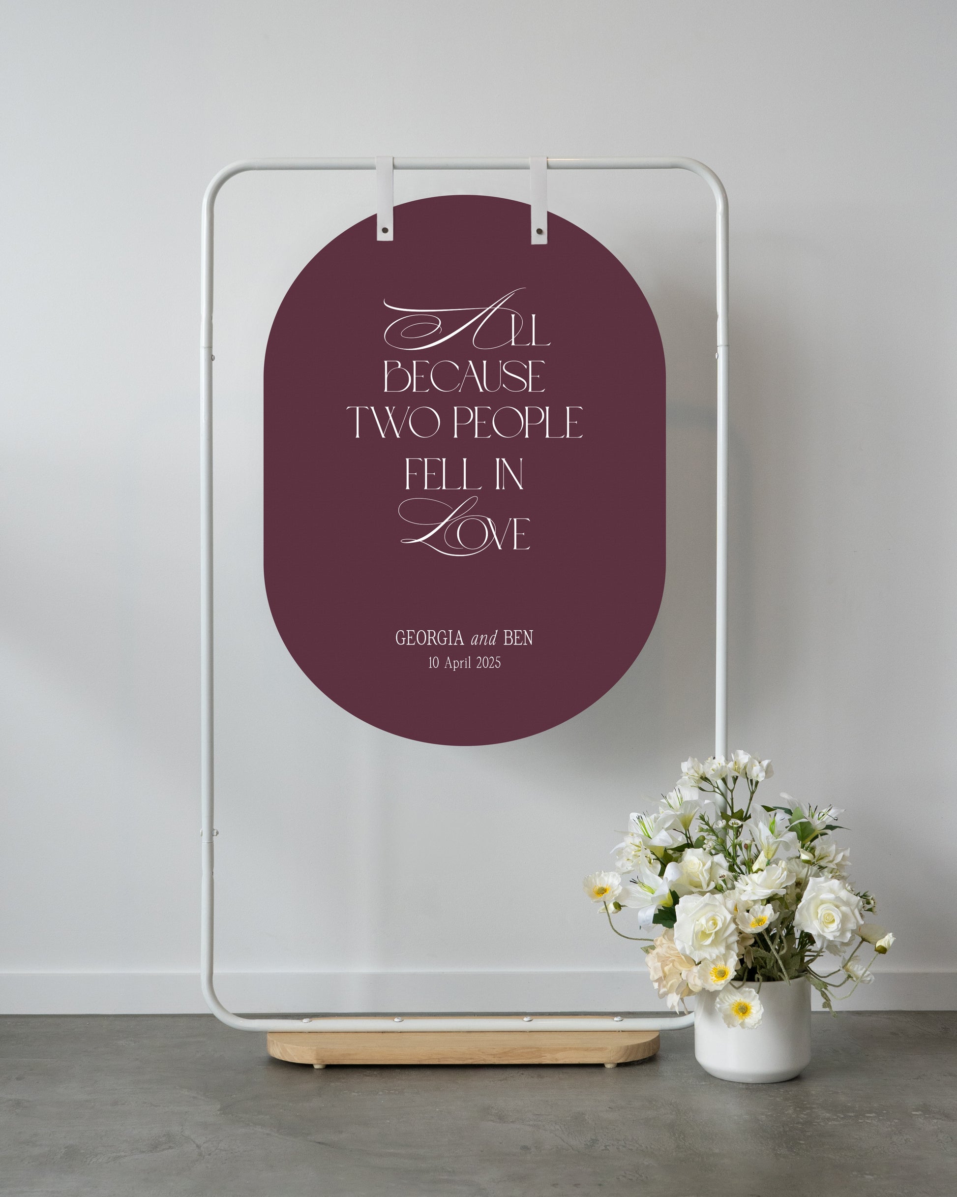 Part of the Austria Collection, this wedding welcome sign is a modern take on the traditional style and encompasses romantic elements.