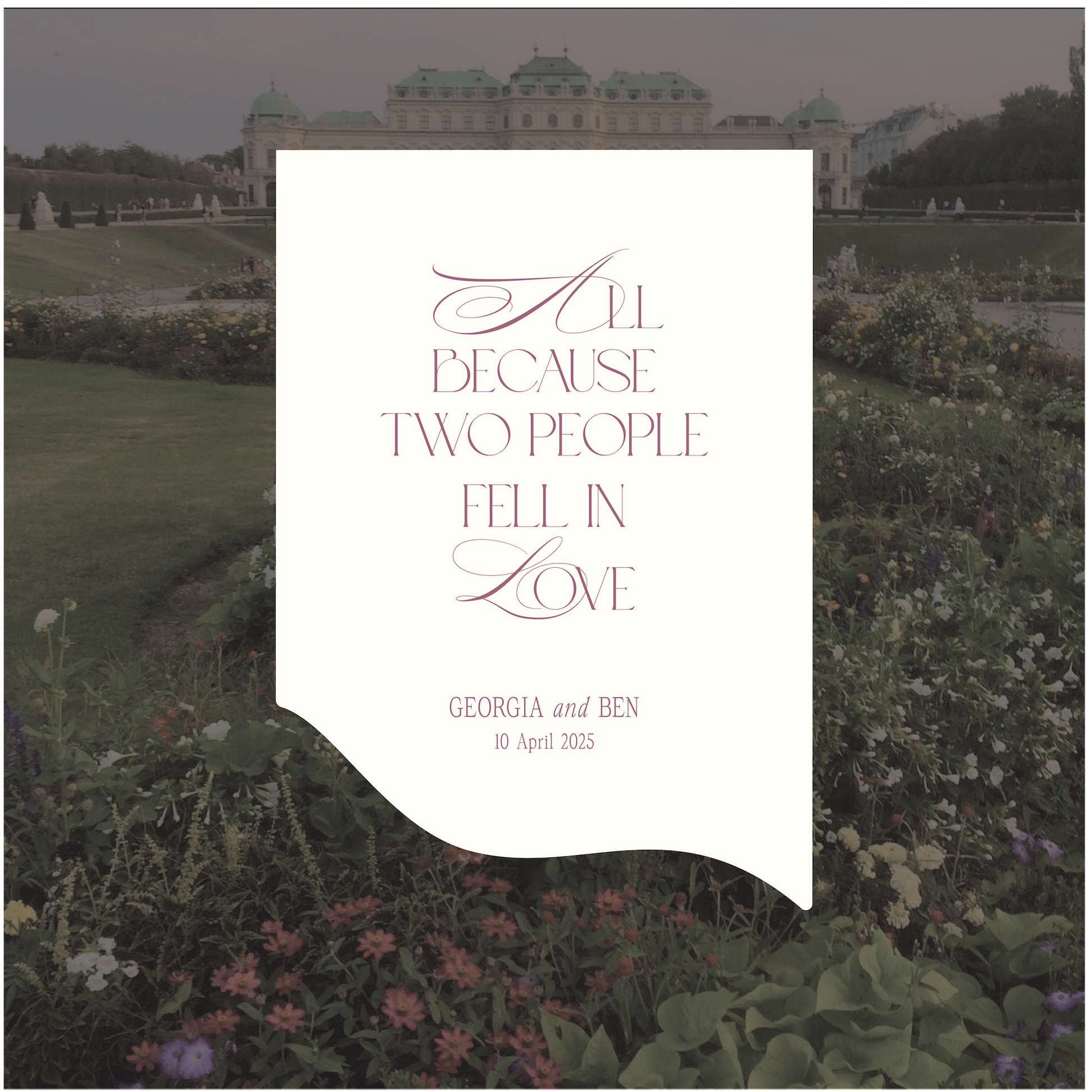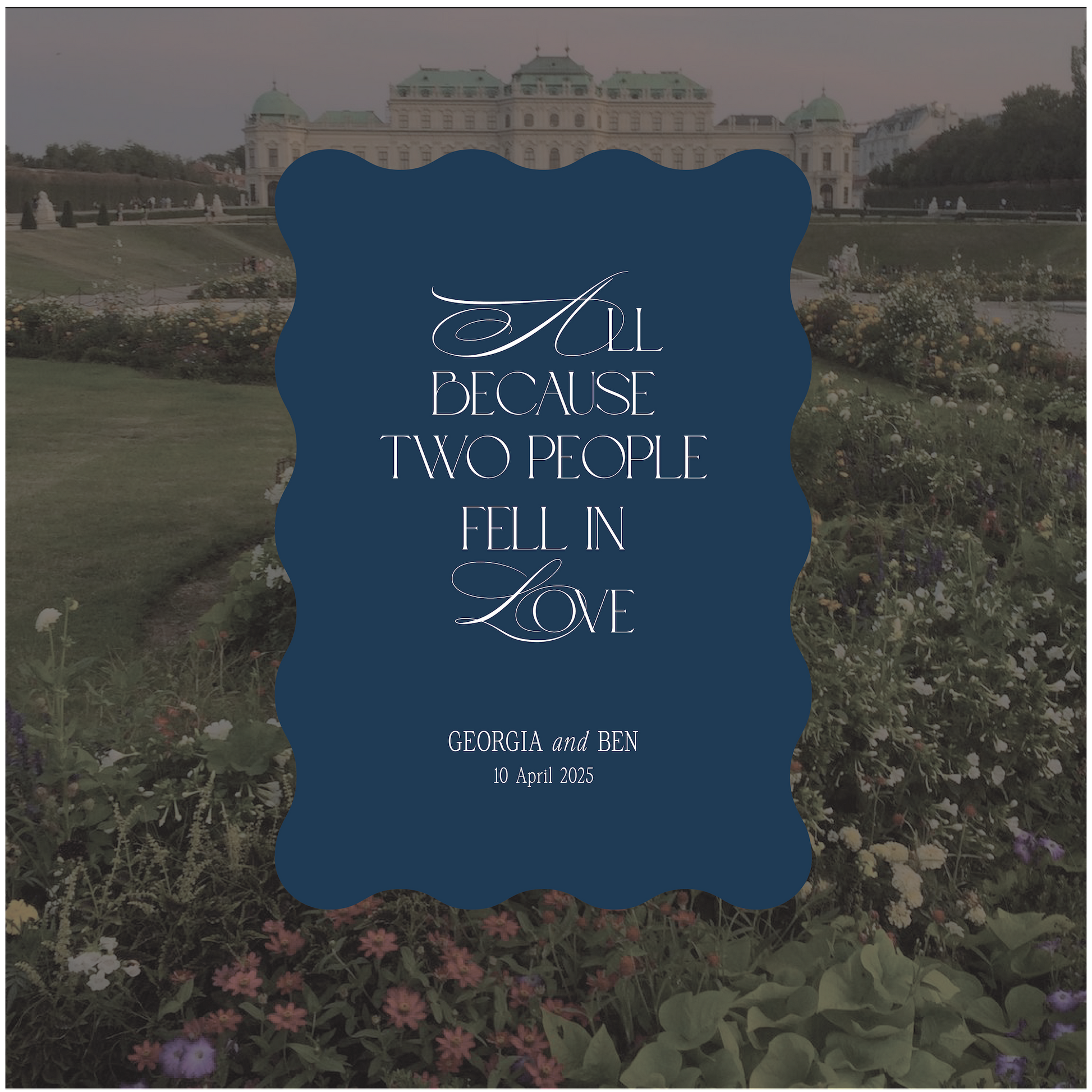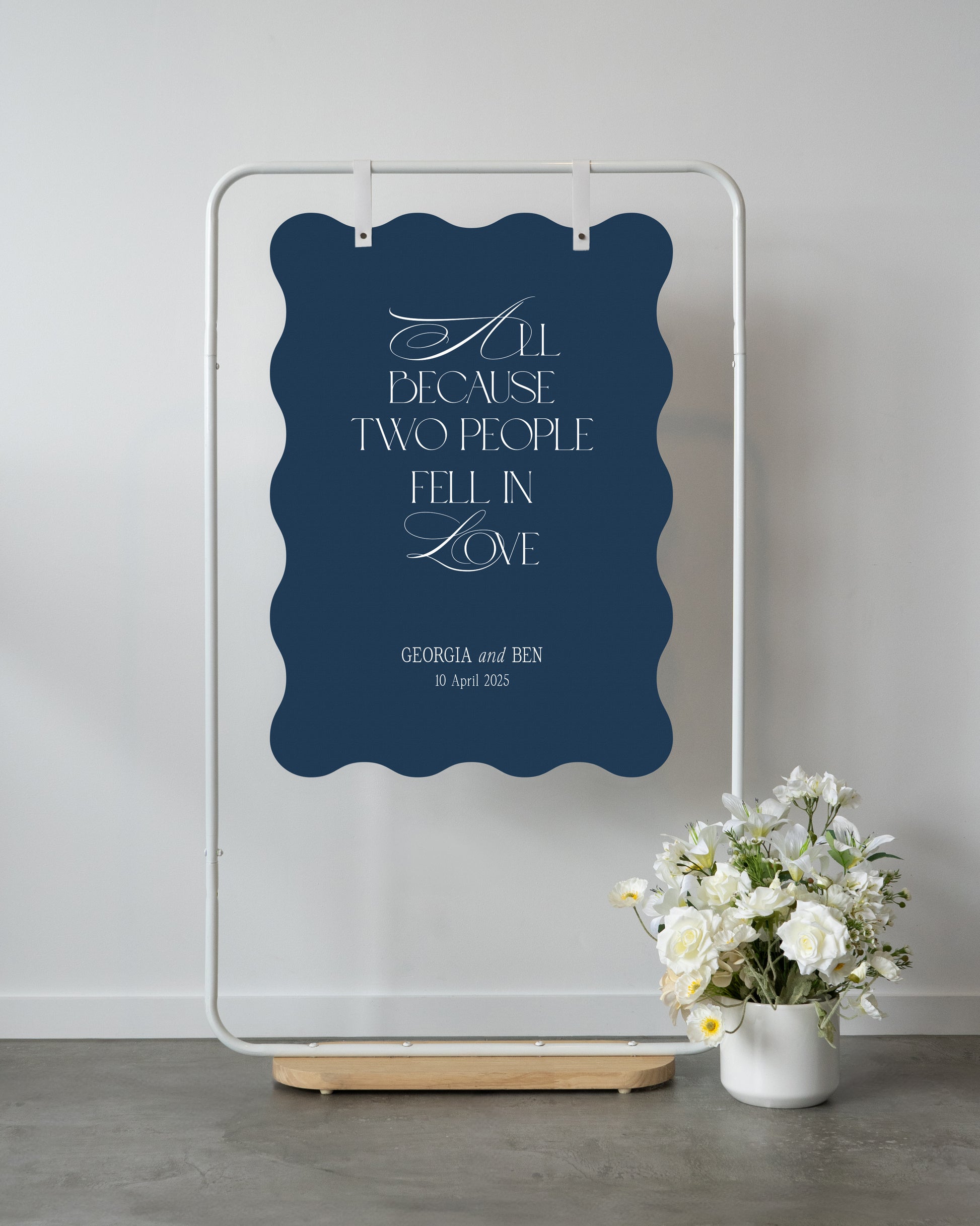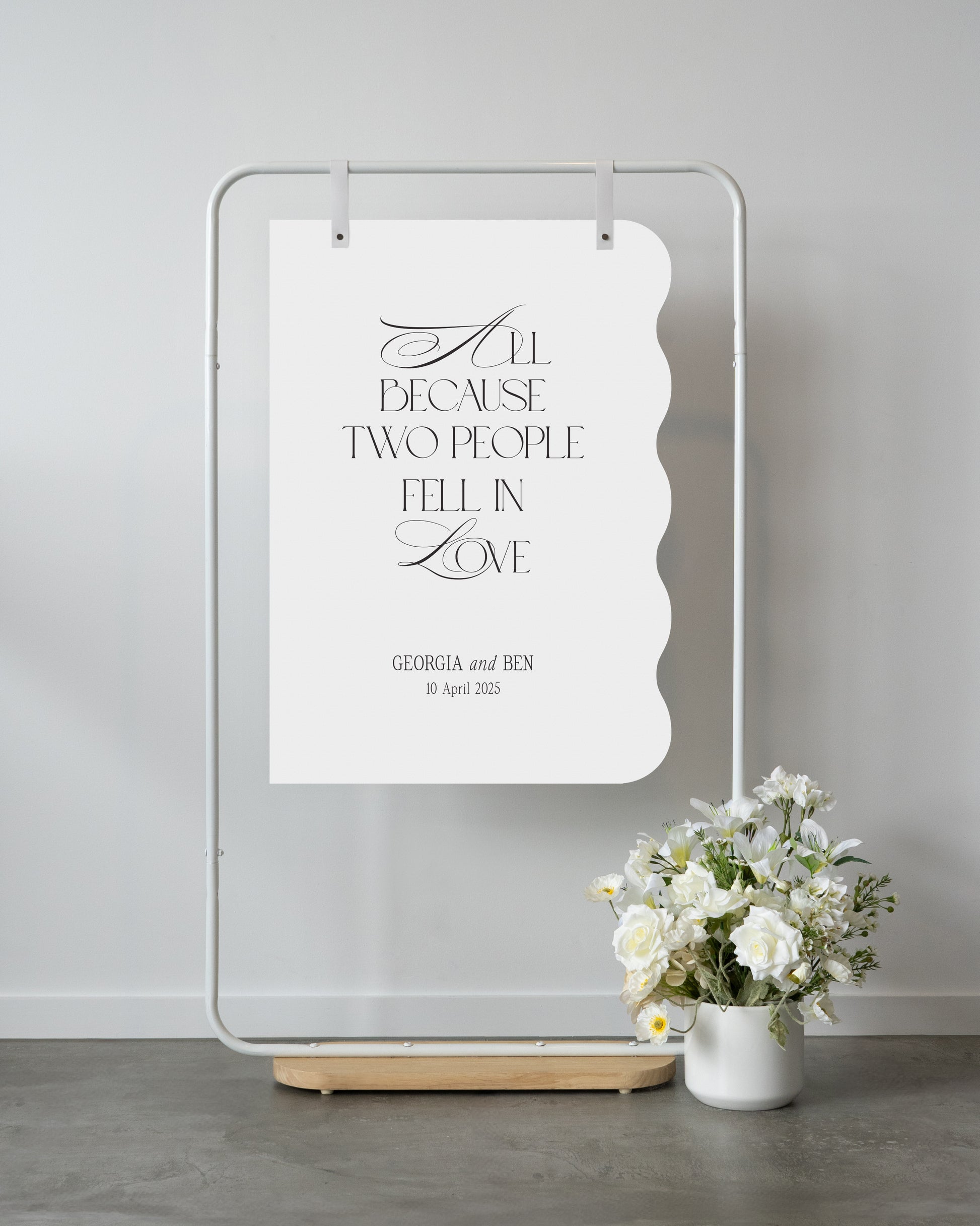 Part of the Austria Collection, this wedding welcome sign is a modern take on the traditional style and encompasses romantic elements.