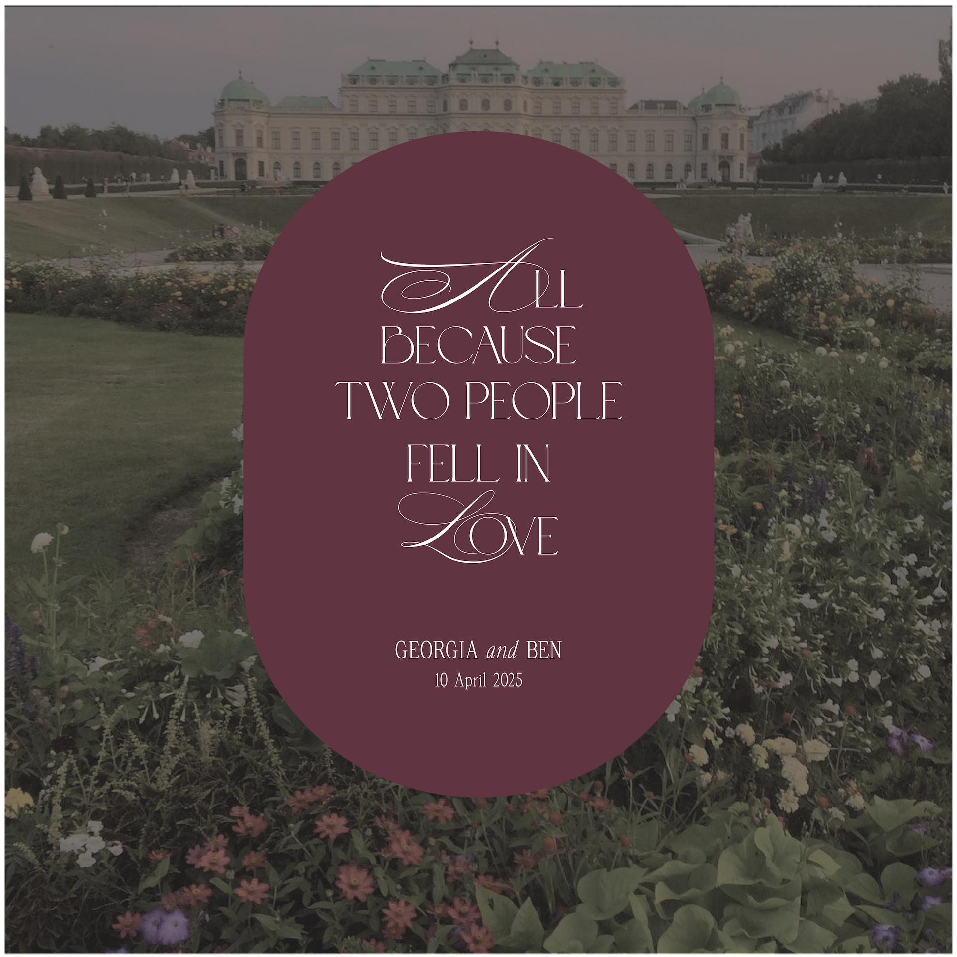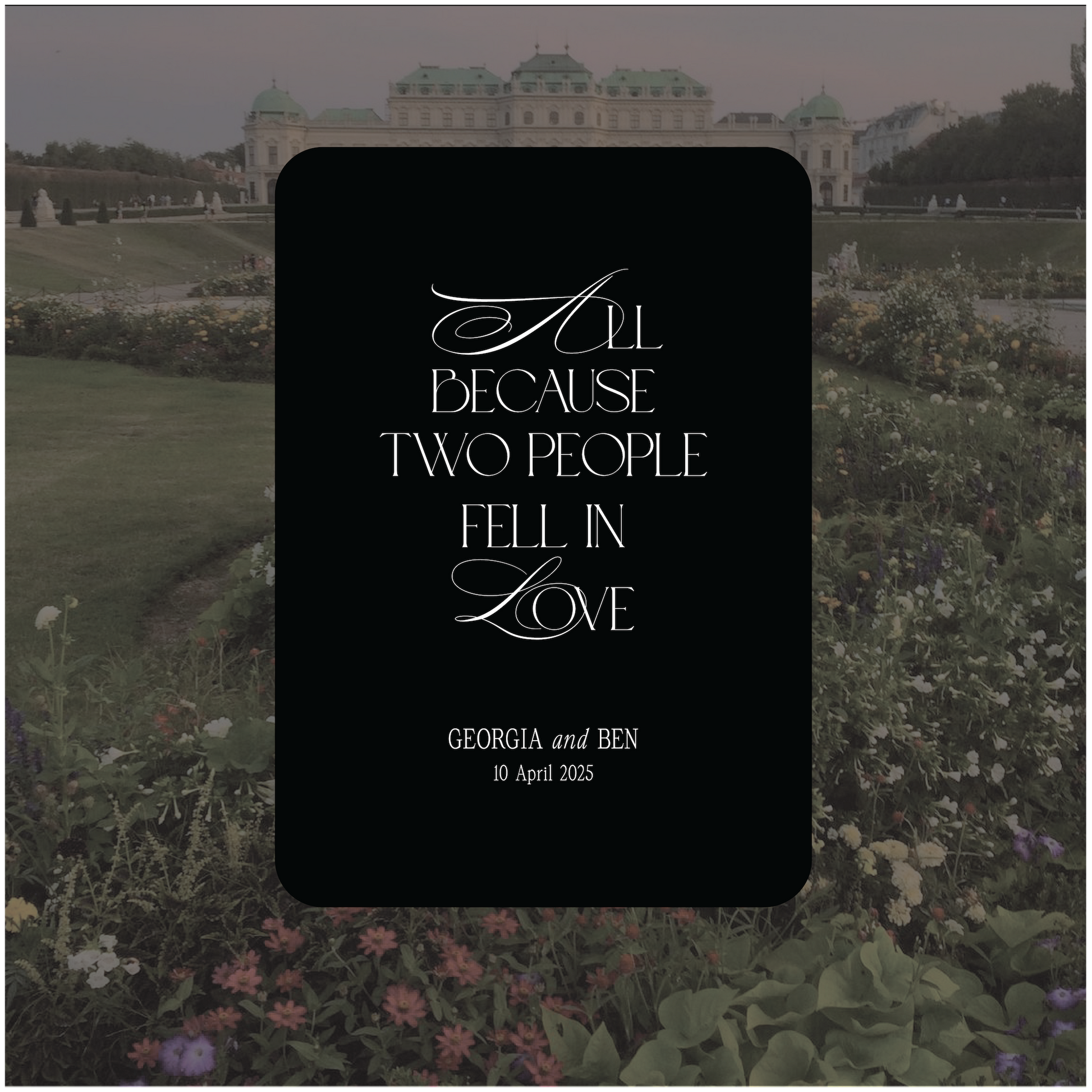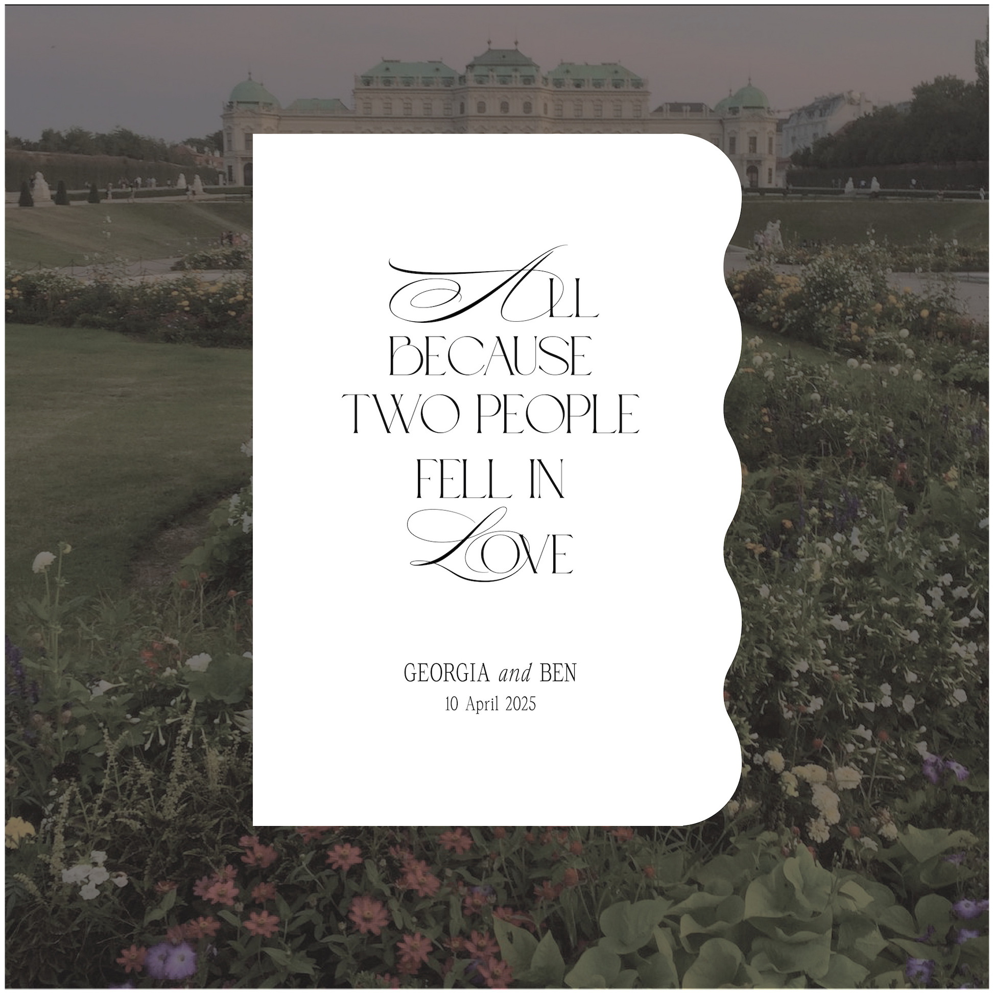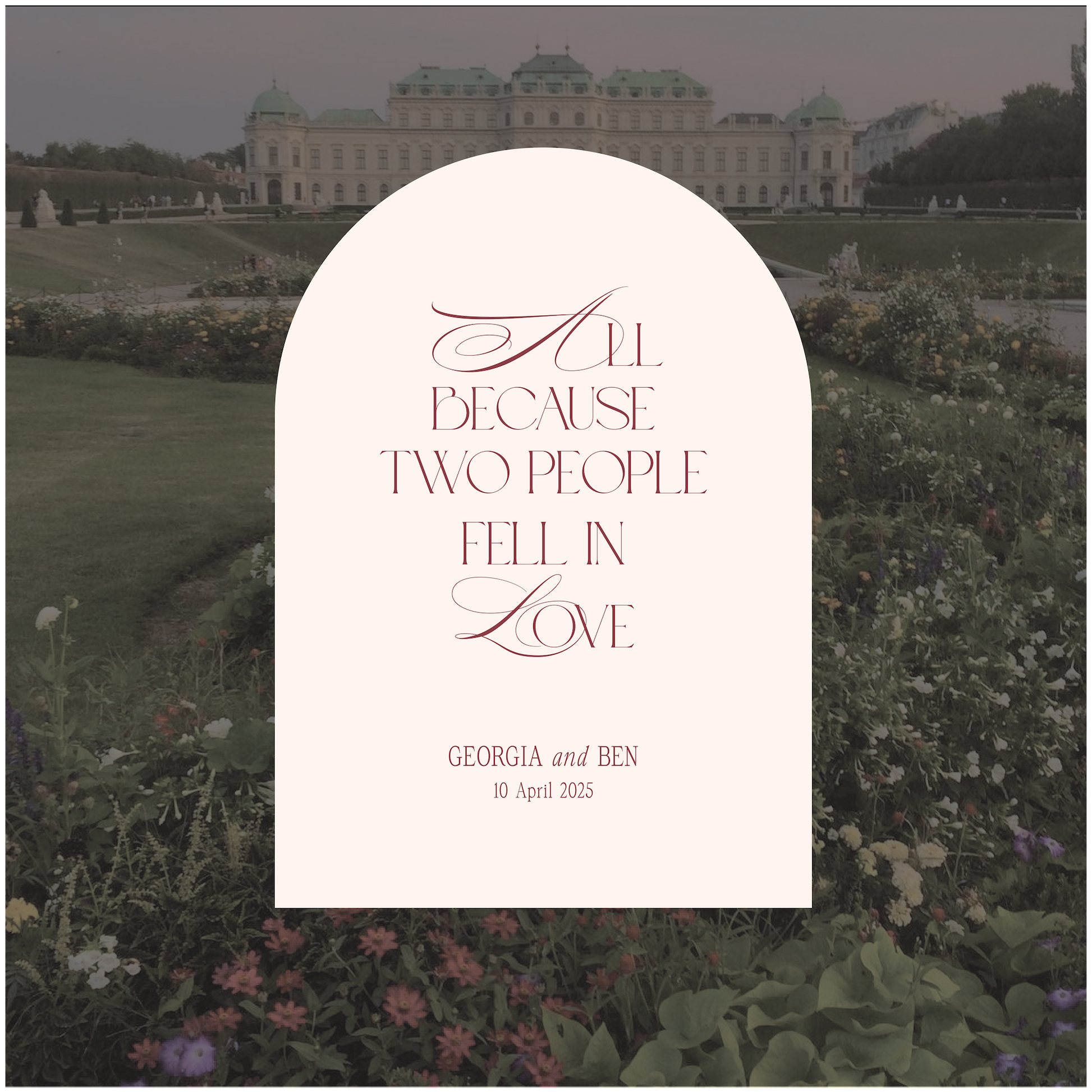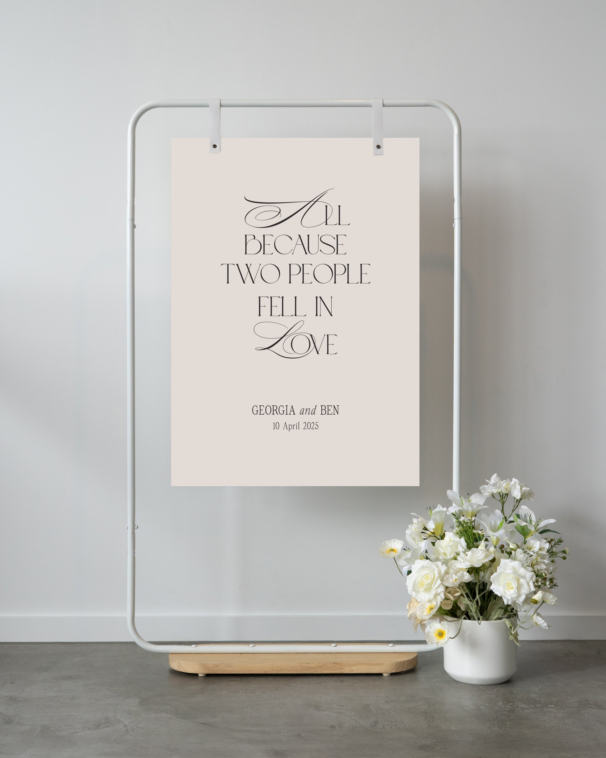 Part of the Austria Collection, this wedding welcome sign is a modern take on the traditional style and encompasses romantic elements.