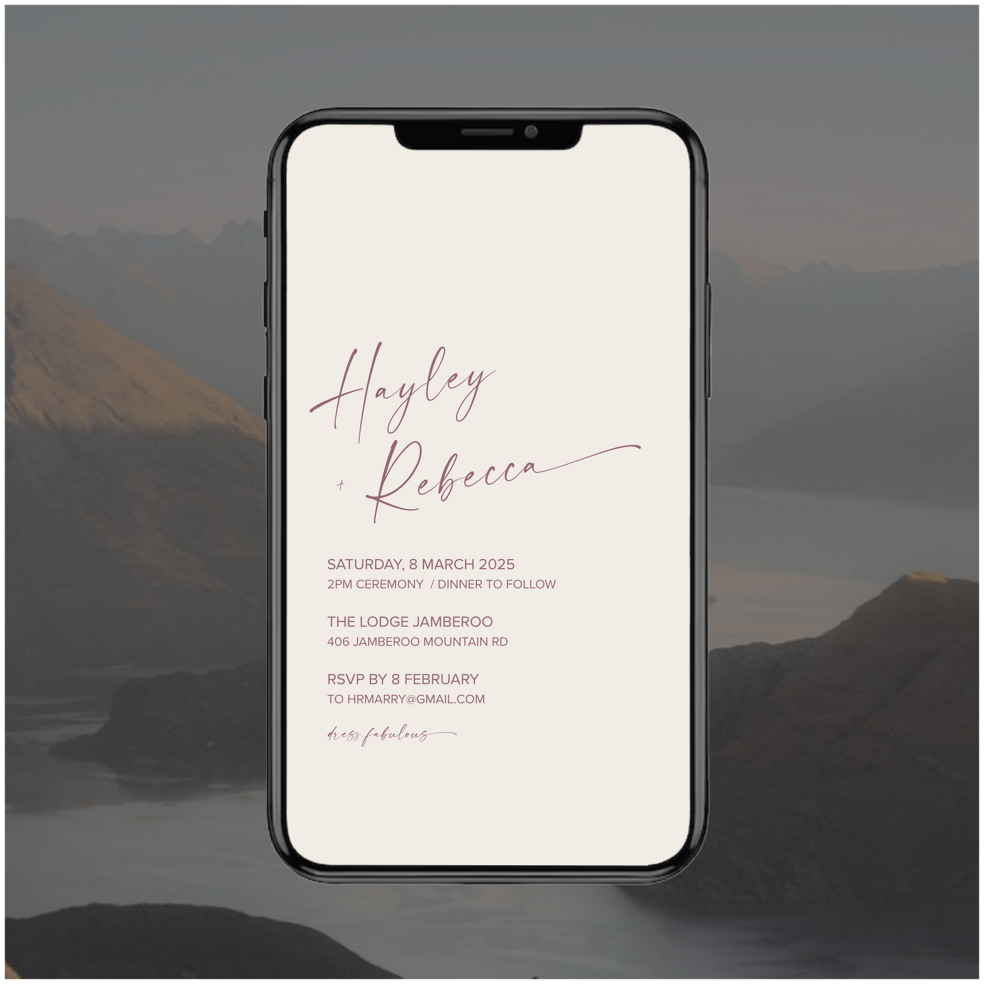 Part of the New Zealand Collection, this digital wedding invite is perfectly paired back for those modern lovers looking for something simple, classic and romantic.