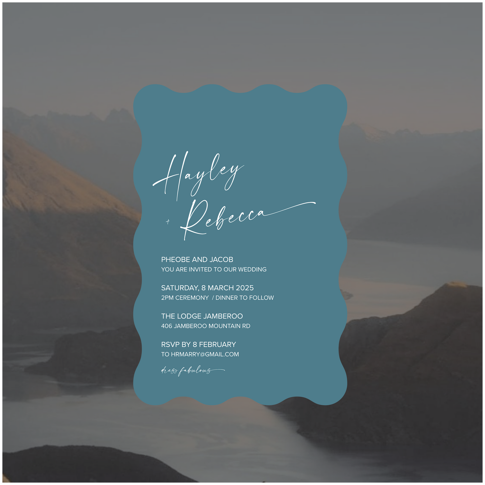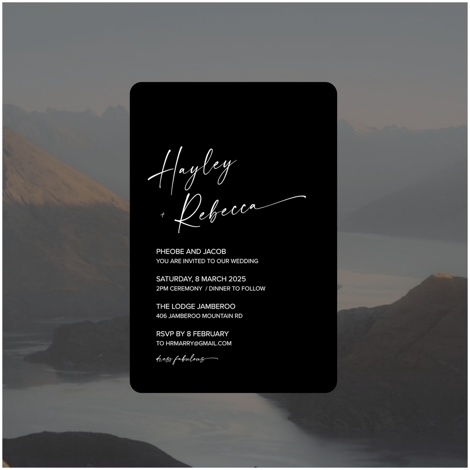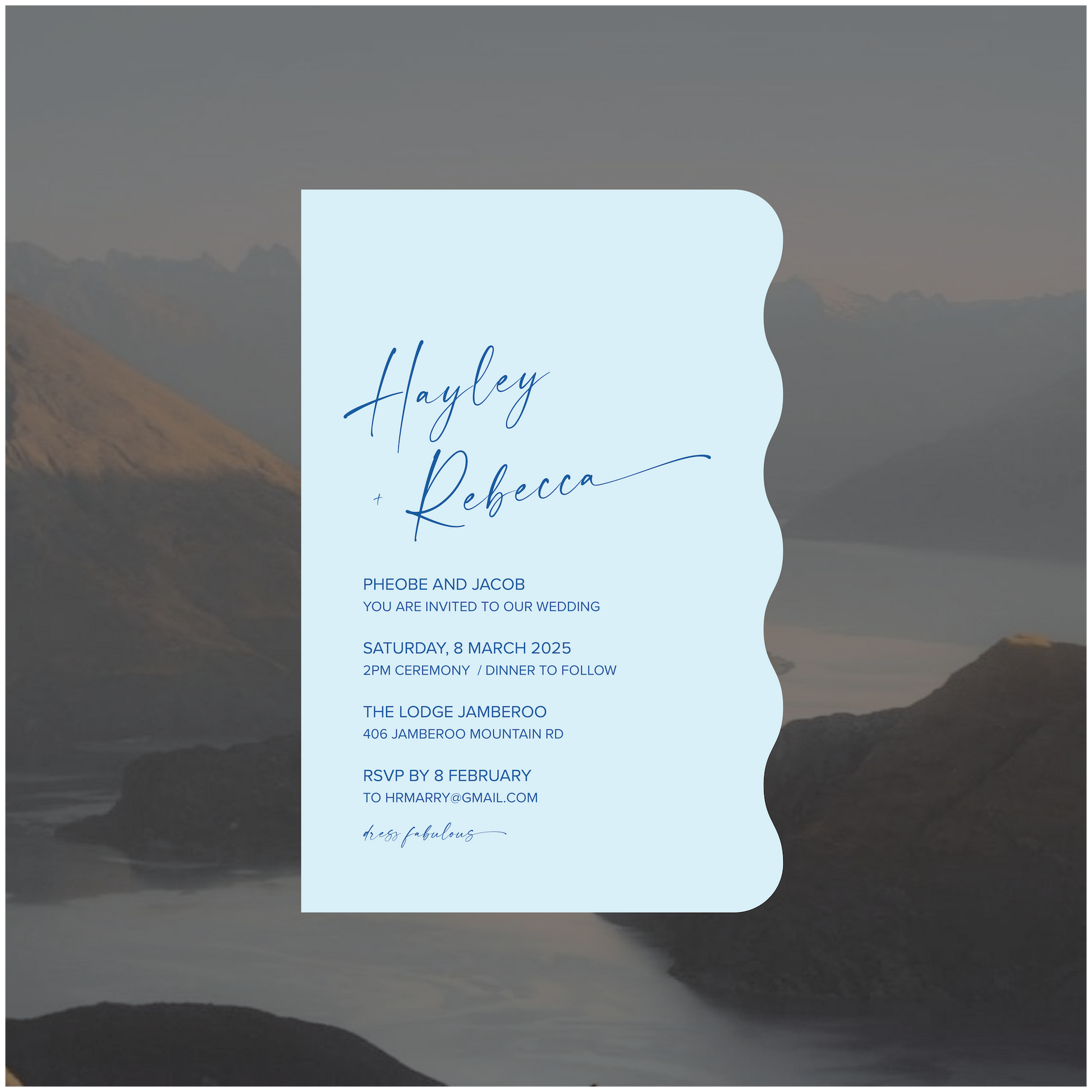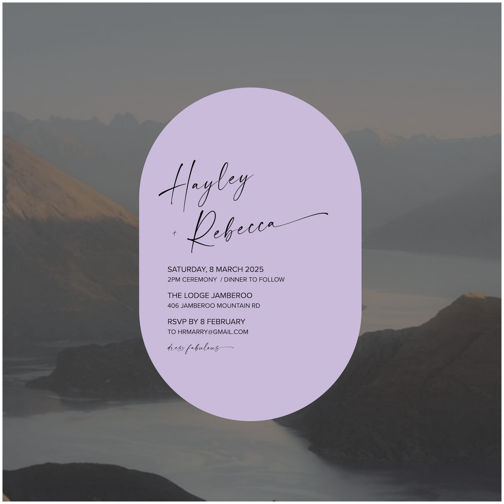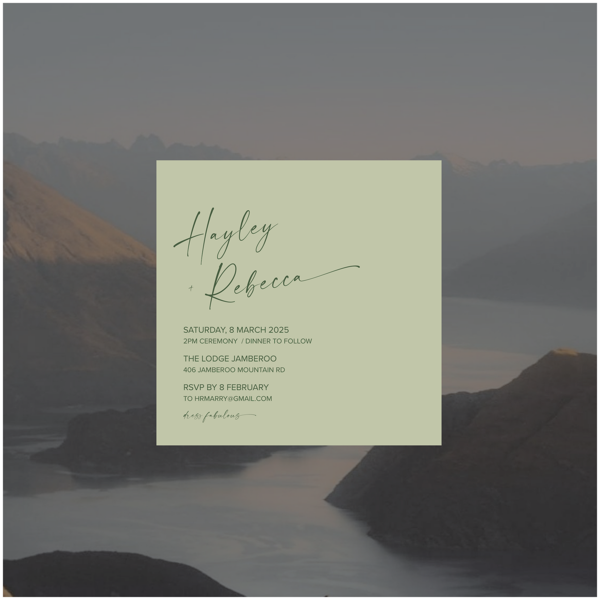 Part of the New Zealand Collection, this single piece wedding invite is perfectly paired back for those modern lovers looking for something simple, classic and romantic.